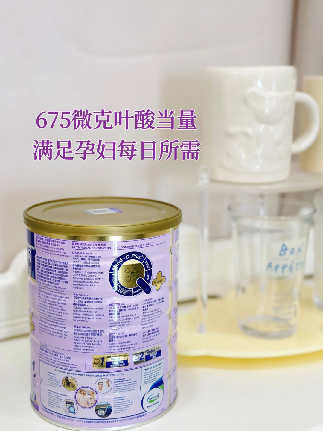 这款奶粉在对于备孕或者孕期的妈妈来说都特别的友好,它富含叶酸、维生素和矿物质除了这些以外,它还含有DHA+GA的CP组合可以帮助,同时里面还含有丰富的益生菌,可以保护肠胃健康,尤其叶酸!675微克叶酸当量,满足孕妇每日所需,所以就不用额外补充叶酸了。