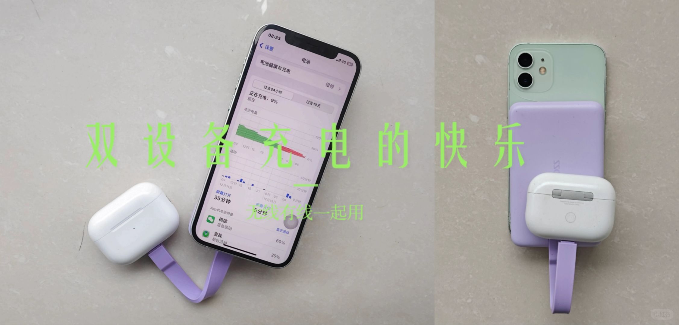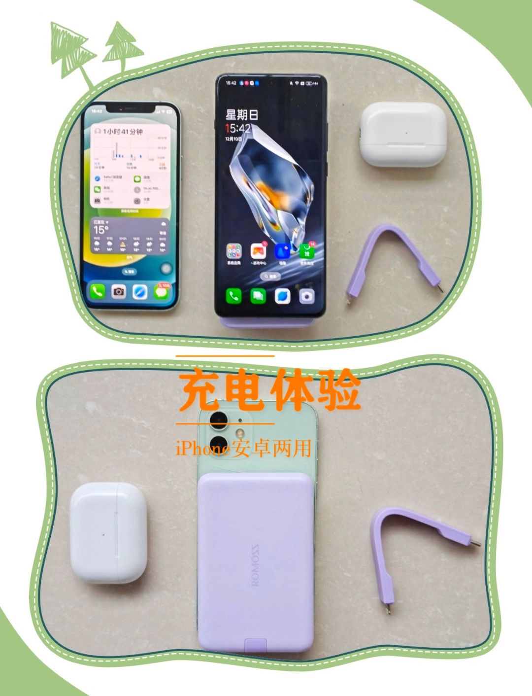 [自拍R]充电速度不错,拿我的iiPhon12来说,半个小时能充40%左右,作为应急完全是够用的。附送的充电线安卓手机和iPhone都可以使用,双持党一起充。