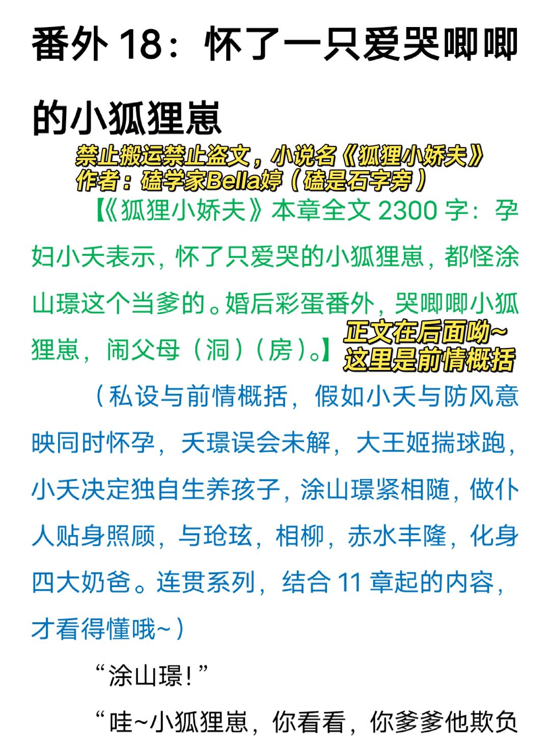 孕妇小夭表示,怀了只爱哭的小狐狸崽,都怪涂山璟这个当爹的。