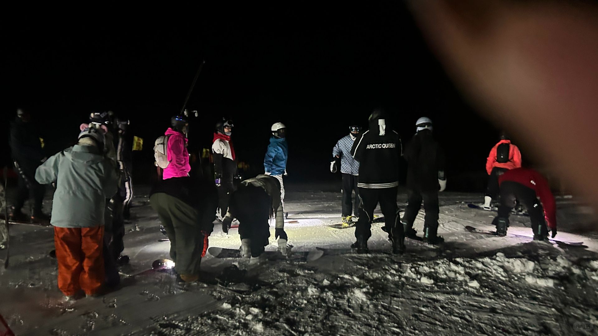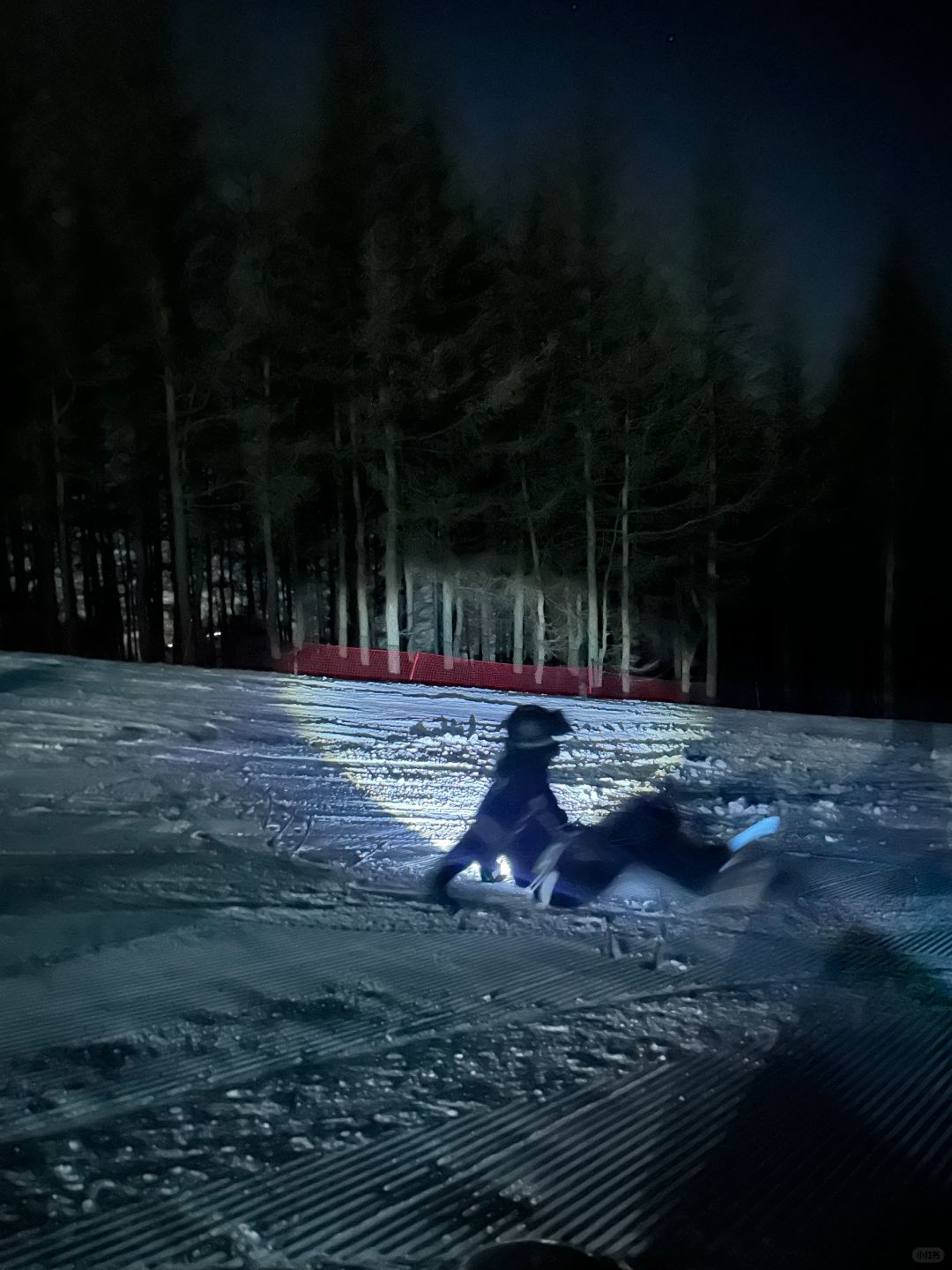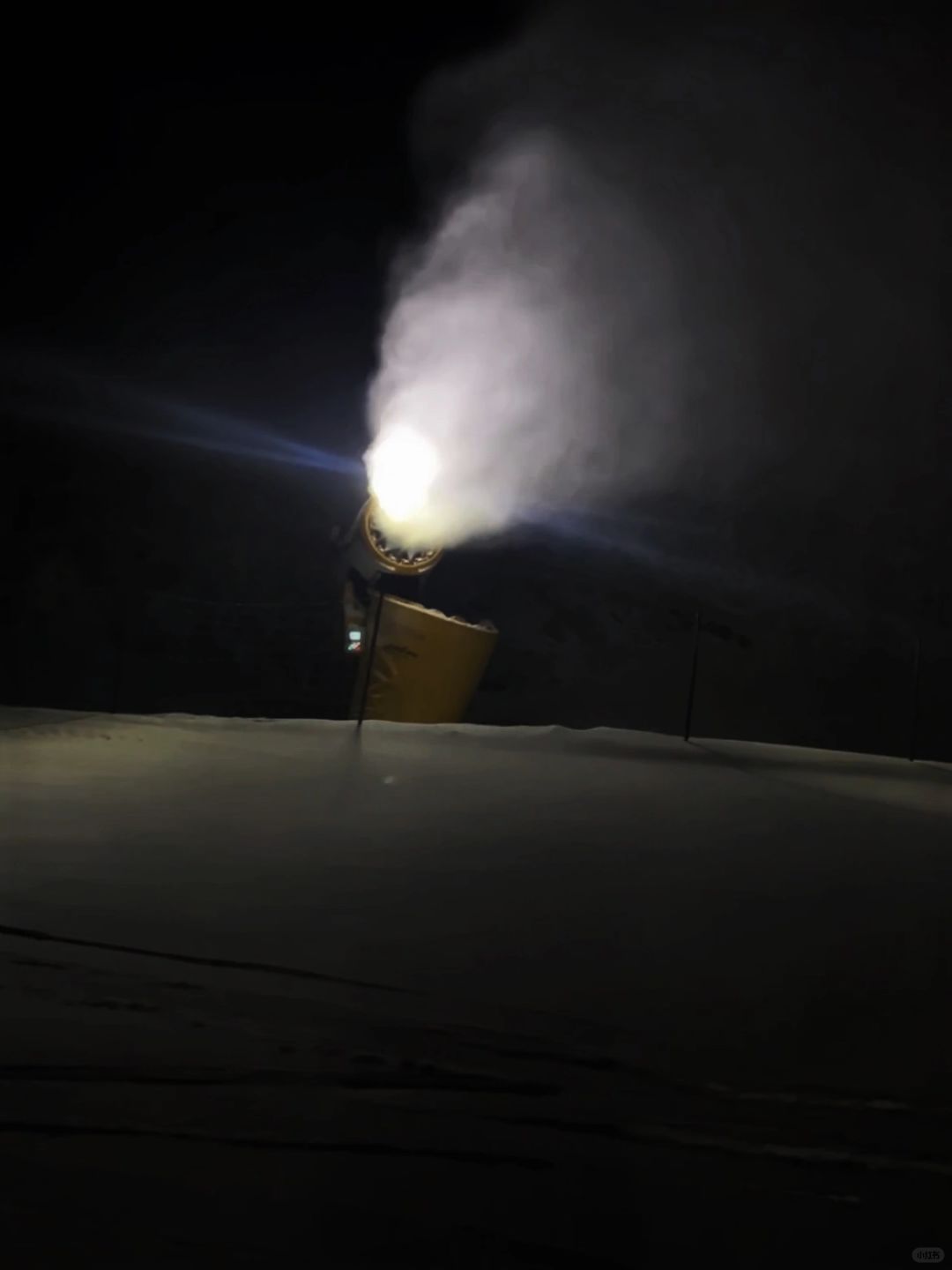 抹黑从万龙夜场回云顶的体验太有趣了! 偶遇了一大群人结伴而行 路过了造雪机在造雪,滑了第一趟粉雪 大家虽然不认识但是会互相帮忙打灯! 人生体验又+1!