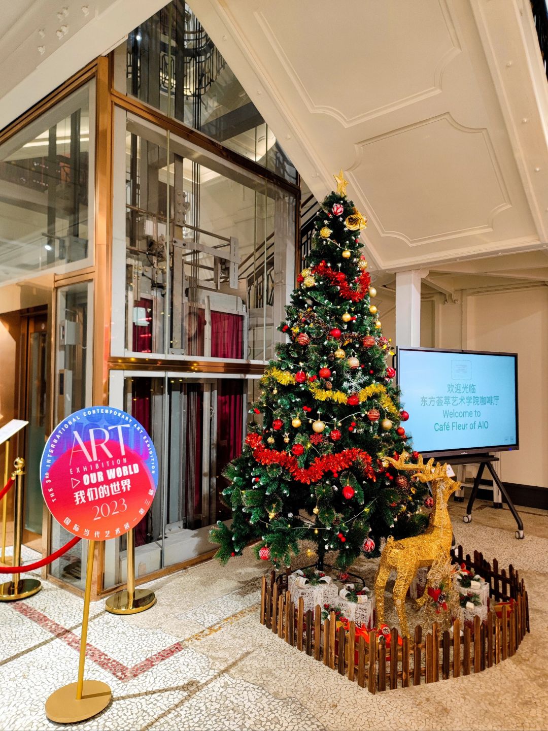 建筑里面空间非常大,比想象中更加复古典雅,延伸到电梯井的扶梯也特别精美,3楼正在展出2023国际当代艺术展,展出世界各地艺术家的绘画、雕塑、装置等100多件作品。