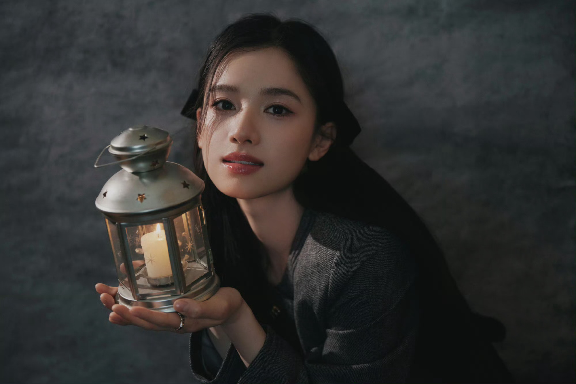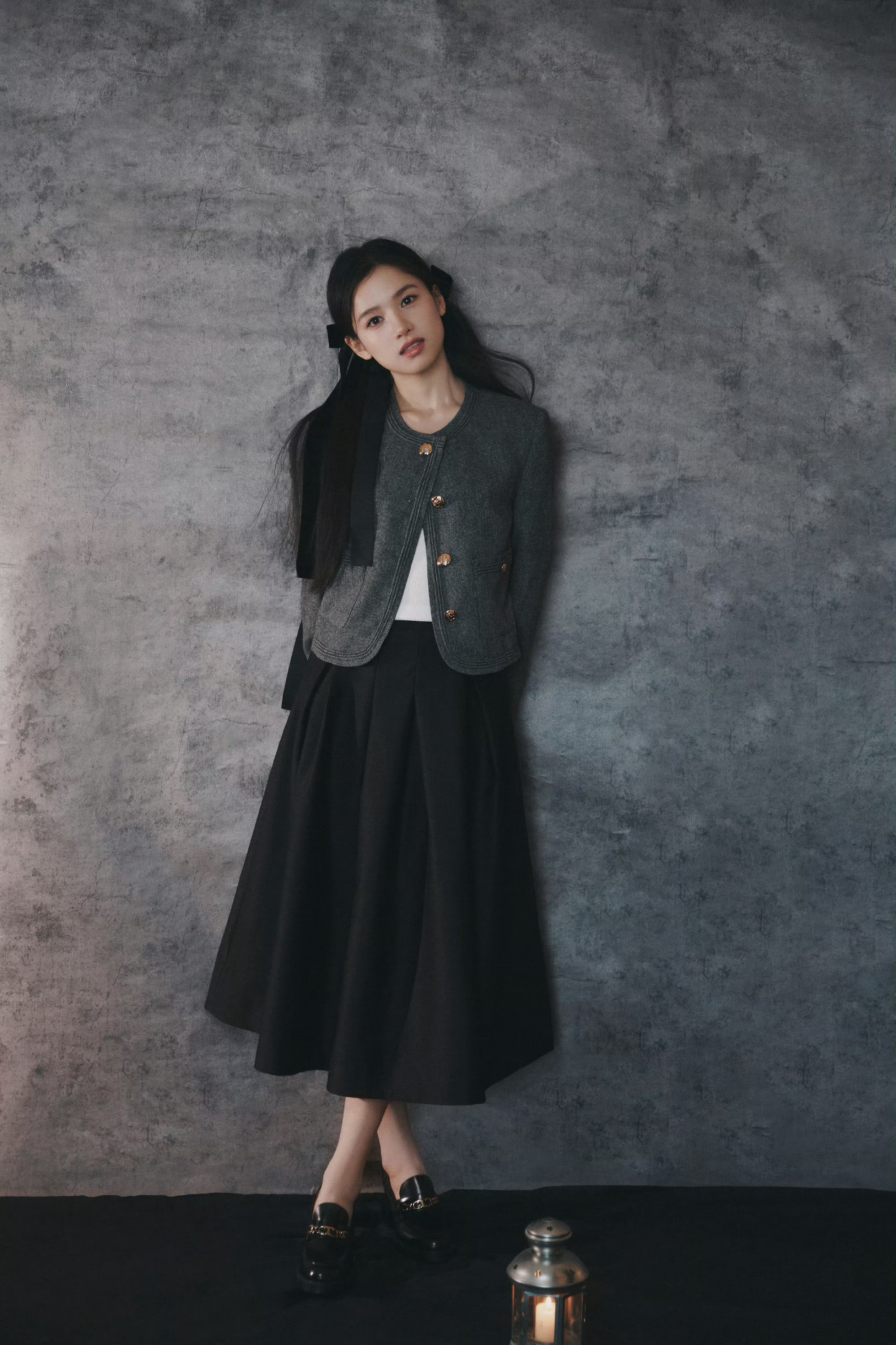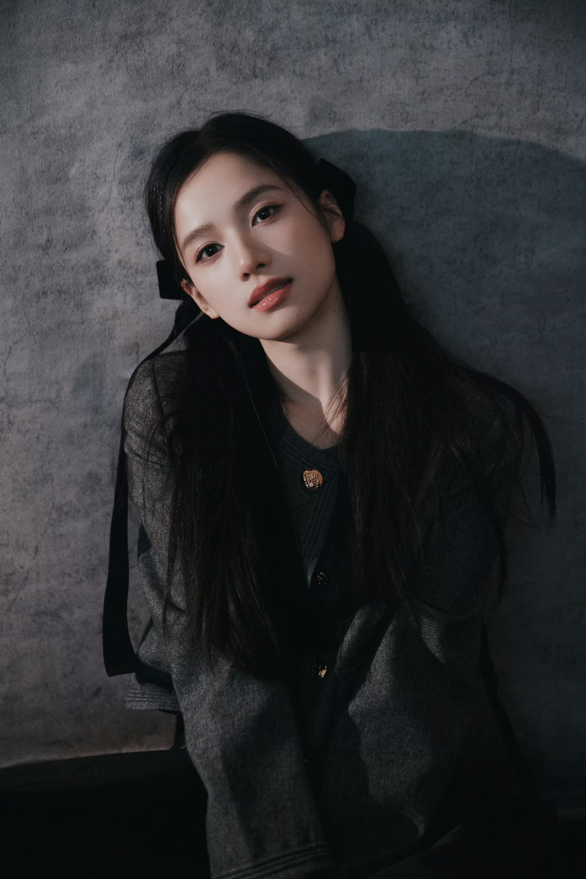 温婉少女打破灰色背景的沉闷,反而多了几分高级质感,宛若油画里的少女跳脱了出来🖼️