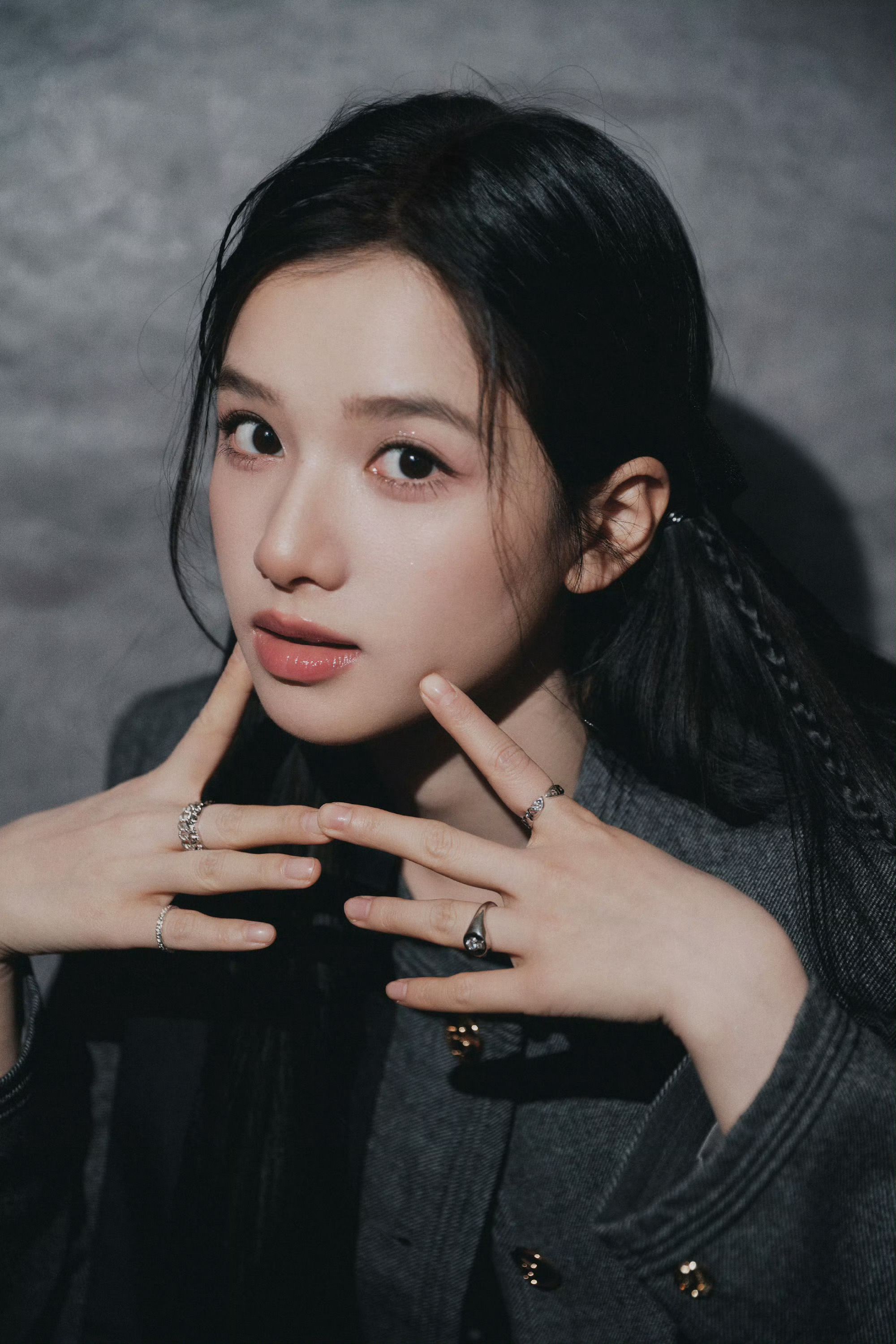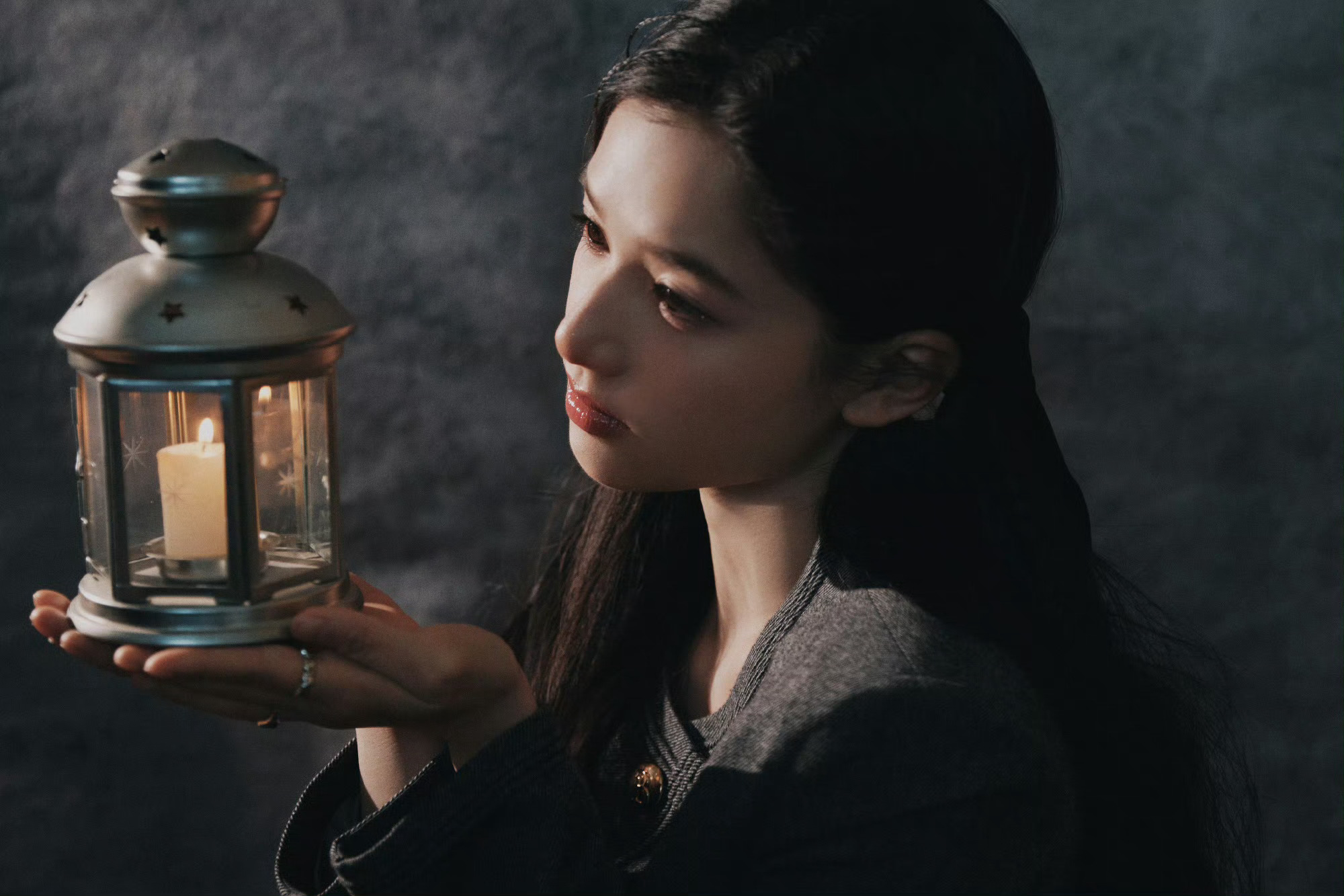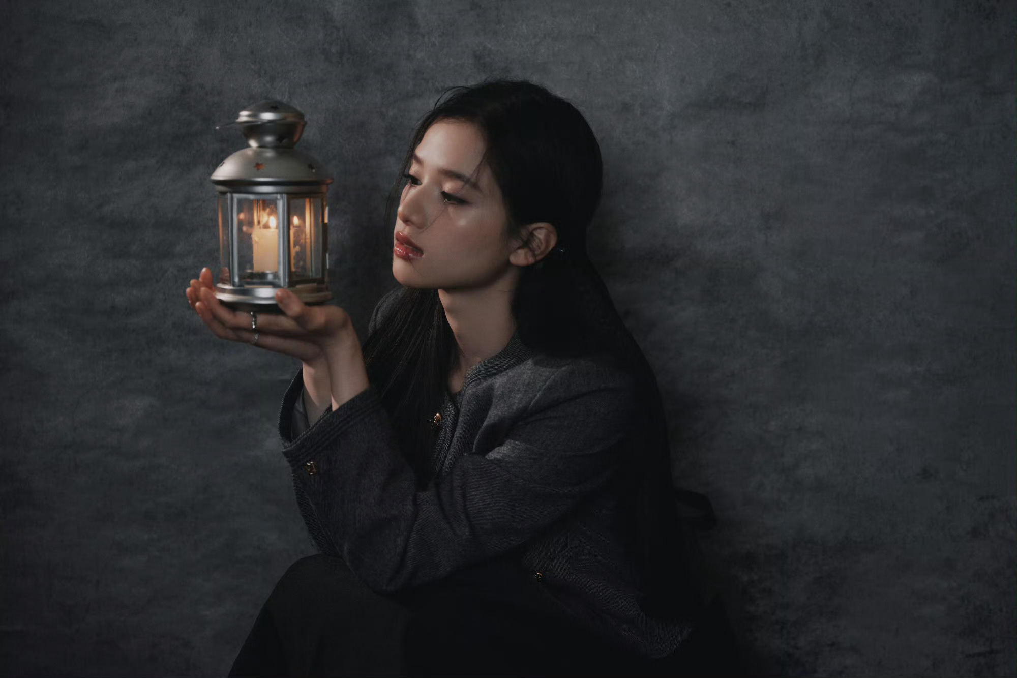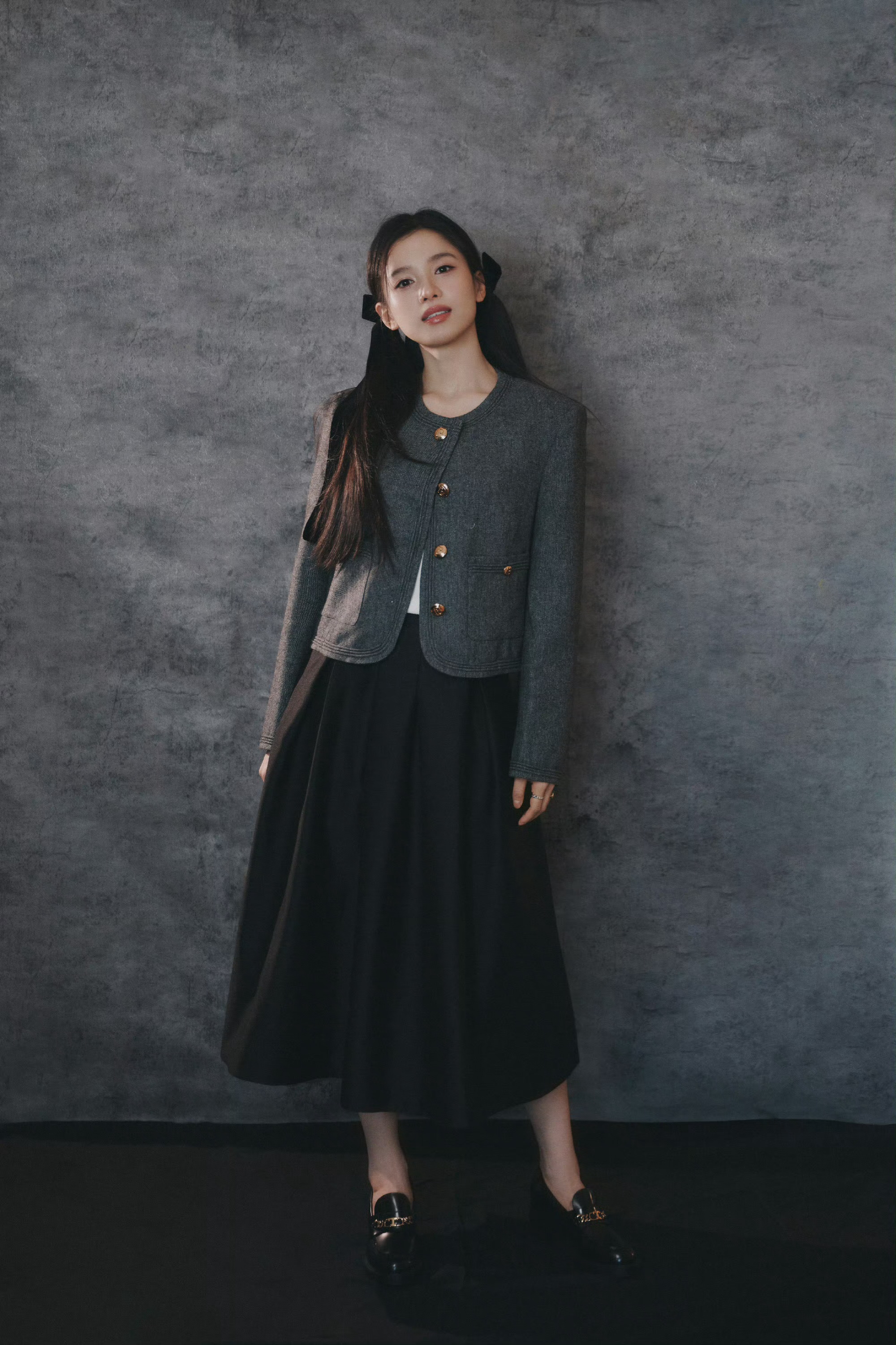温婉少女打破灰色背景的沉闷,反而多了几分高级质感,宛若油画里的少女跳脱了出来🖼️