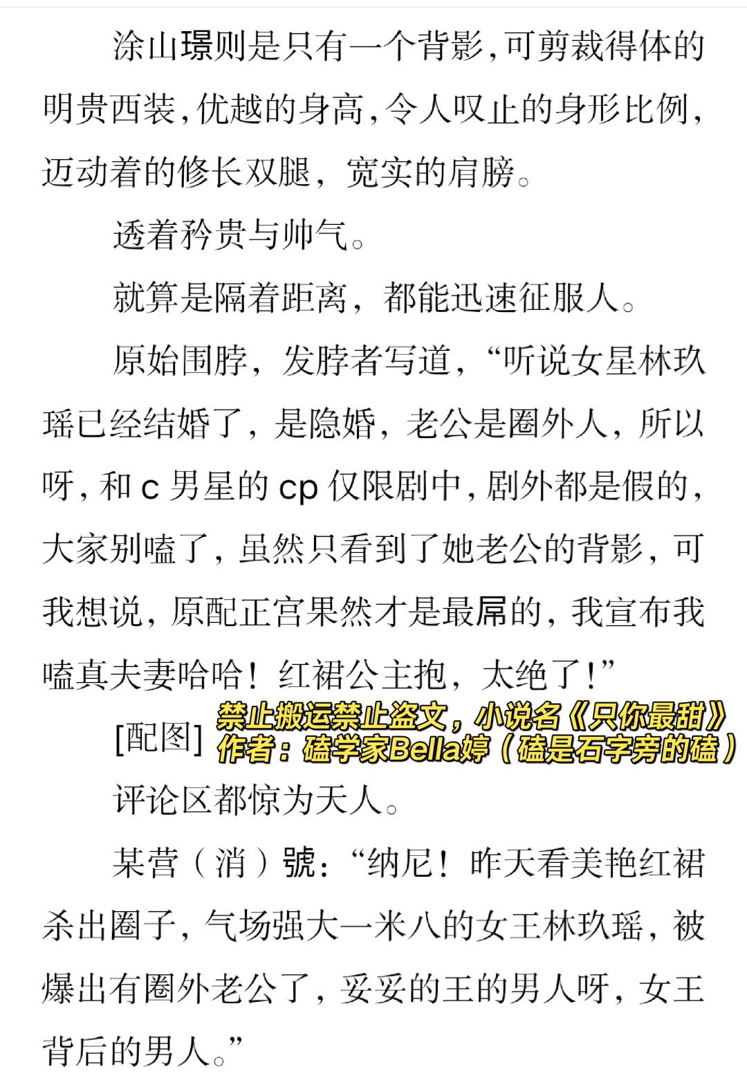 原始围脖,发脖者写道,“听说女星林玖瑶已经结婚了,是隐婚,老公是圈外人,所以呀,和c男星的cp仅限剧中,剧外都是假的,大家别嗑了,虽然只看到了她老公的背影,可我想说,原配正宫果然才是最屌的,我宣布我嗑真夫妻哈哈!红裙公主抱,太绝了!”