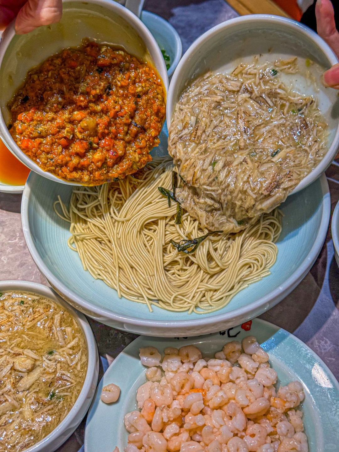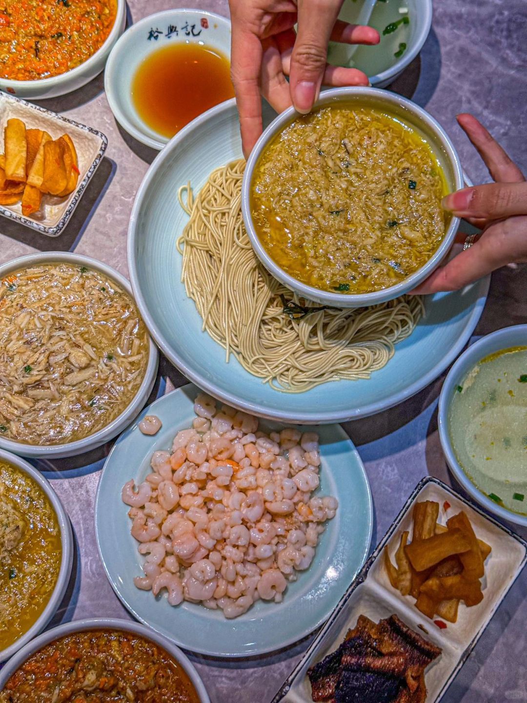 没有人能拒绝这满满的一碗蟹黄面吧,这鲜味吃过一碗之后还想去! 你没听错👉就是这家裕兴记面馆,他们家也是上海都喜欢去的面馆,每次来都好多人。 来了要点他们家的豪华双人套餐~套餐里的手剥虾仁真的令我垂涎欲滴,满满的一大盘分量很足,又大又鲜美而且还全是虾 套餐里面还有蟹柳、蟹粉面、蟹黄面!面🍜吃完的话还可以续,我和朋友两个人点了这个套餐吃的是饱饱的。 如此美味的一顿蟹黄面,哪怕天天去吃我觉得我还是好喜欢!