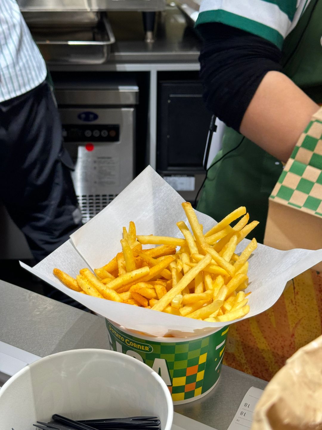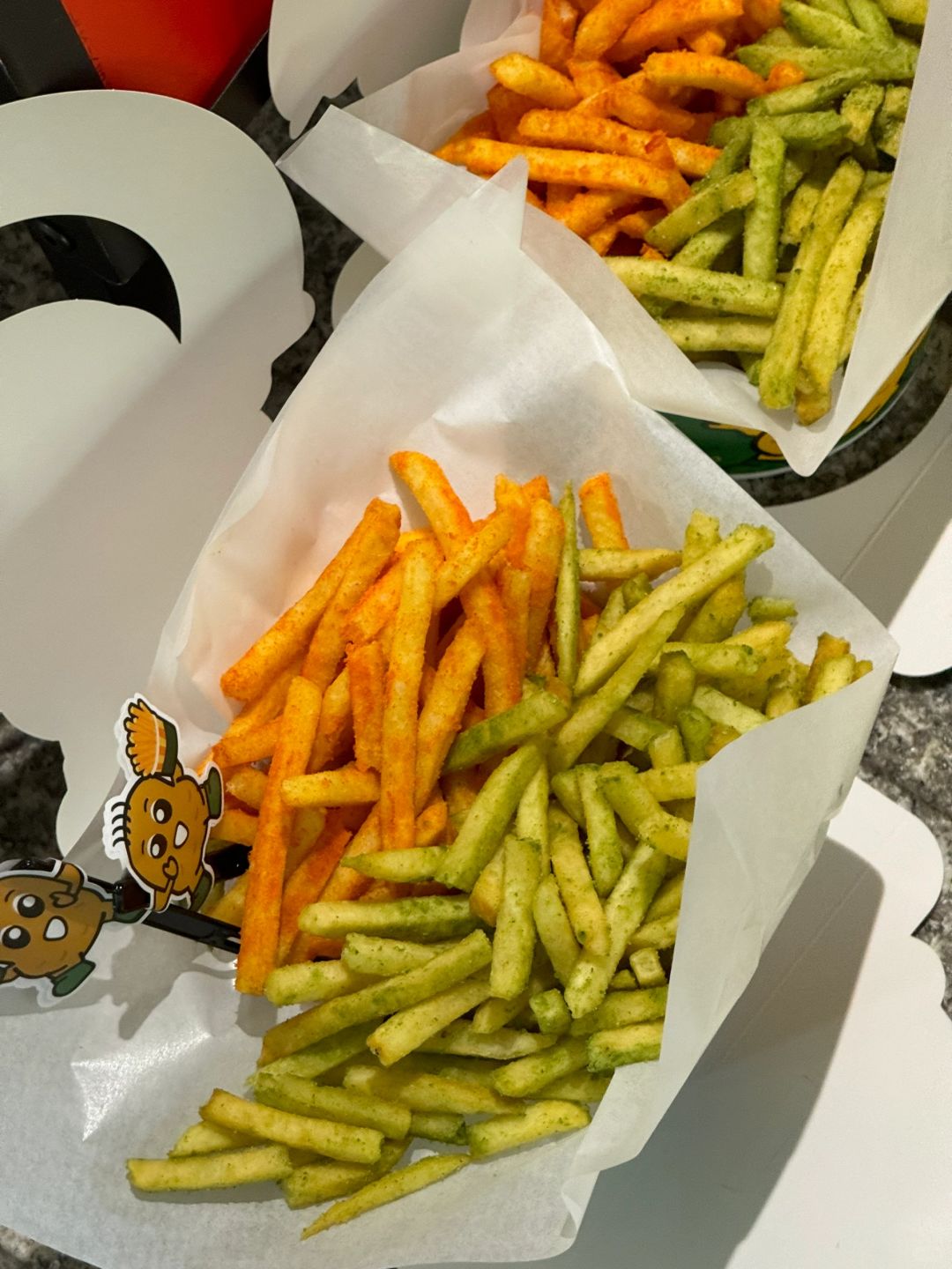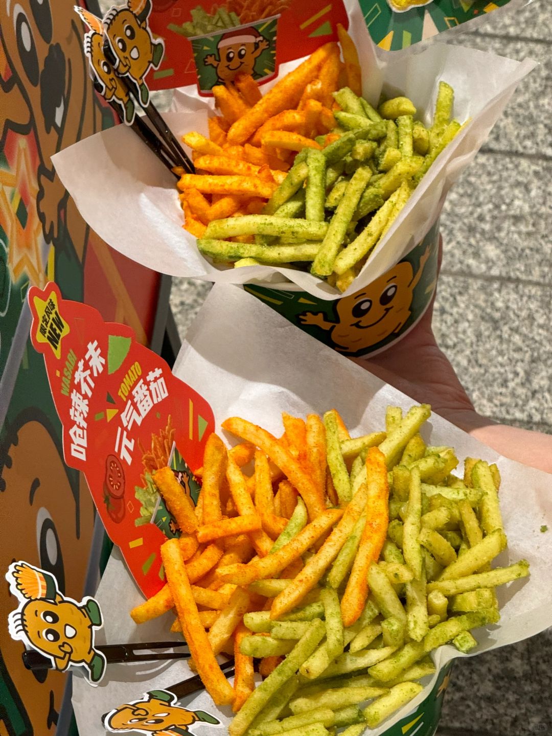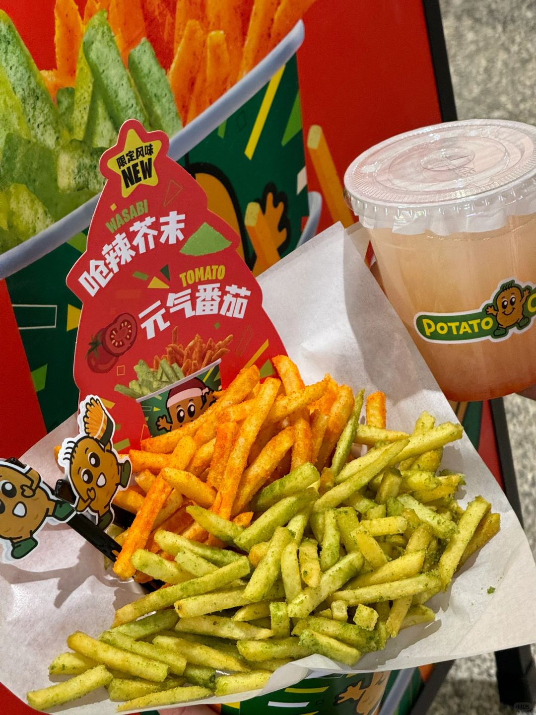 哈哈哈!真的炒鸡爱薯薯 我ZuiAi的potato corner 圣诞限定季开始啦 你个显眼包,竟然还出了红绿cp💚🧡 🍟呛辣芥末 绿色的薯条别有一番滋味芥末口味的!微辣小呛,喜欢吃辣星人的ZuiAi 🍟元气番茄 现场出炉的,口感酥脆酥脆的 不愧是城中热店,酸酸甜甜的 炒鸡好吃耶! 💥:哦对了!+8元换购饮料1杯呢 🏠:potato corner ⛳:静安区大悦城店:静安区XiZang北路198号