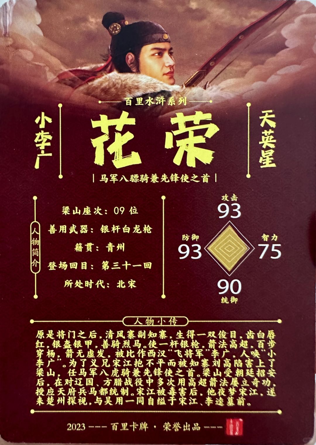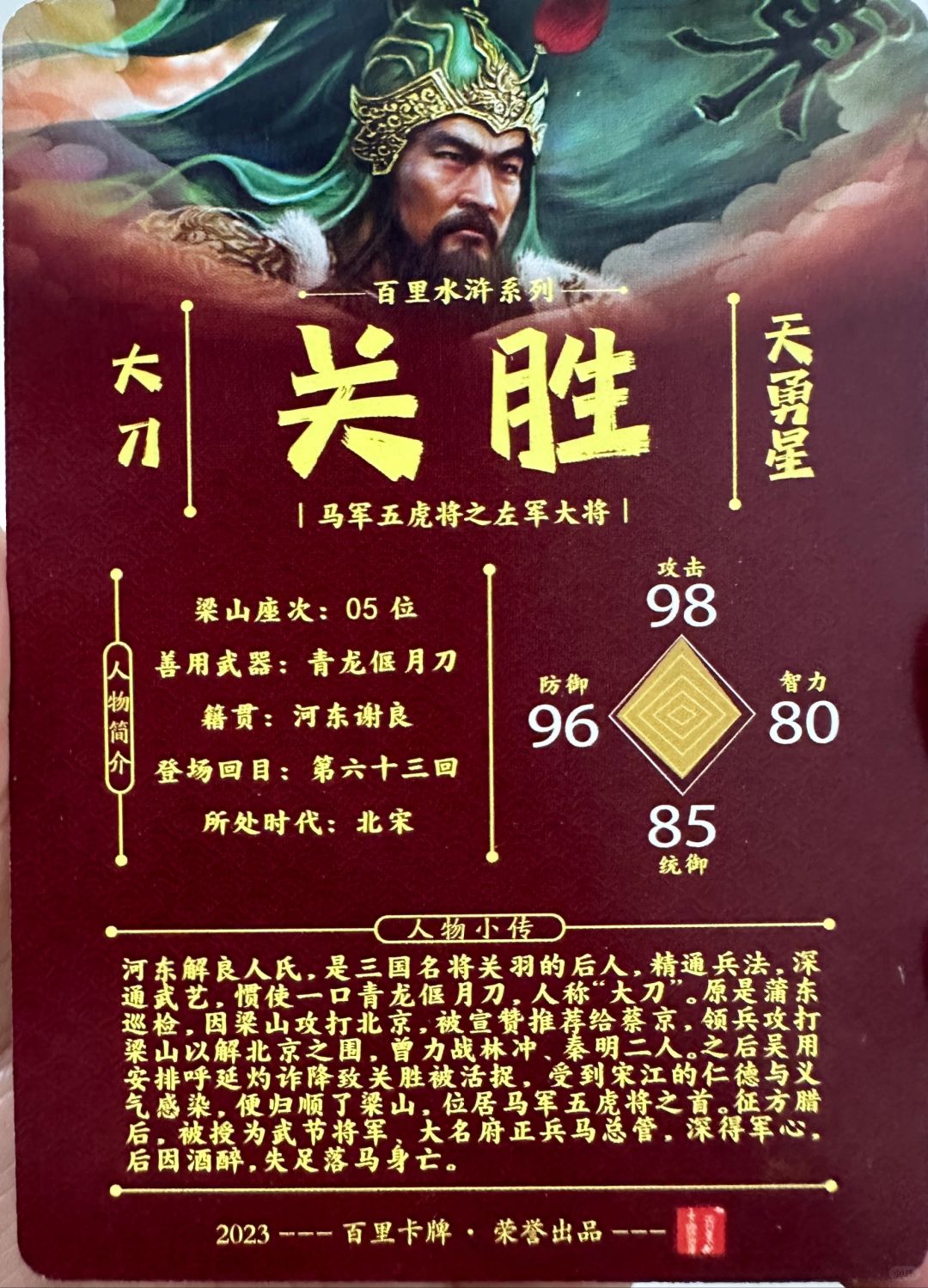 百里卡牌出品的《飞鸿水浒》原创国潮收藏卡牌 由原青流水浒线稿基础上 苍之飞鸿老师绘画上色 人物绘画风格独树一帜,青流线稿有浮世绘的风格,飞鸿老师上色又极具写实逼真,卡牌质量上佳,其中这套卡的卡背设计非常棒。