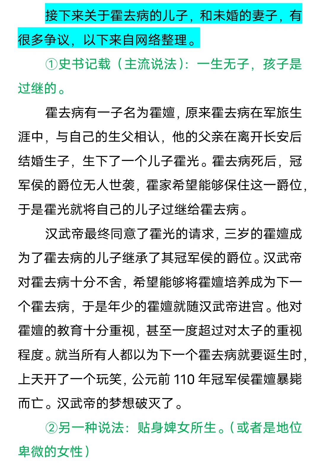 接下来关于霍去病的儿子,和未婚的妻子,有很多争议,以下来自网络整理。