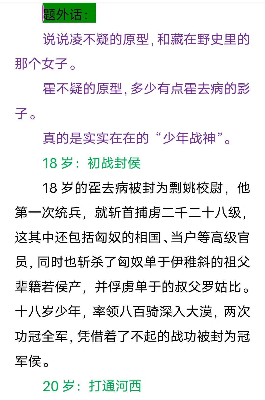 霍不疑的原型,多少有点霍去病的影子。
