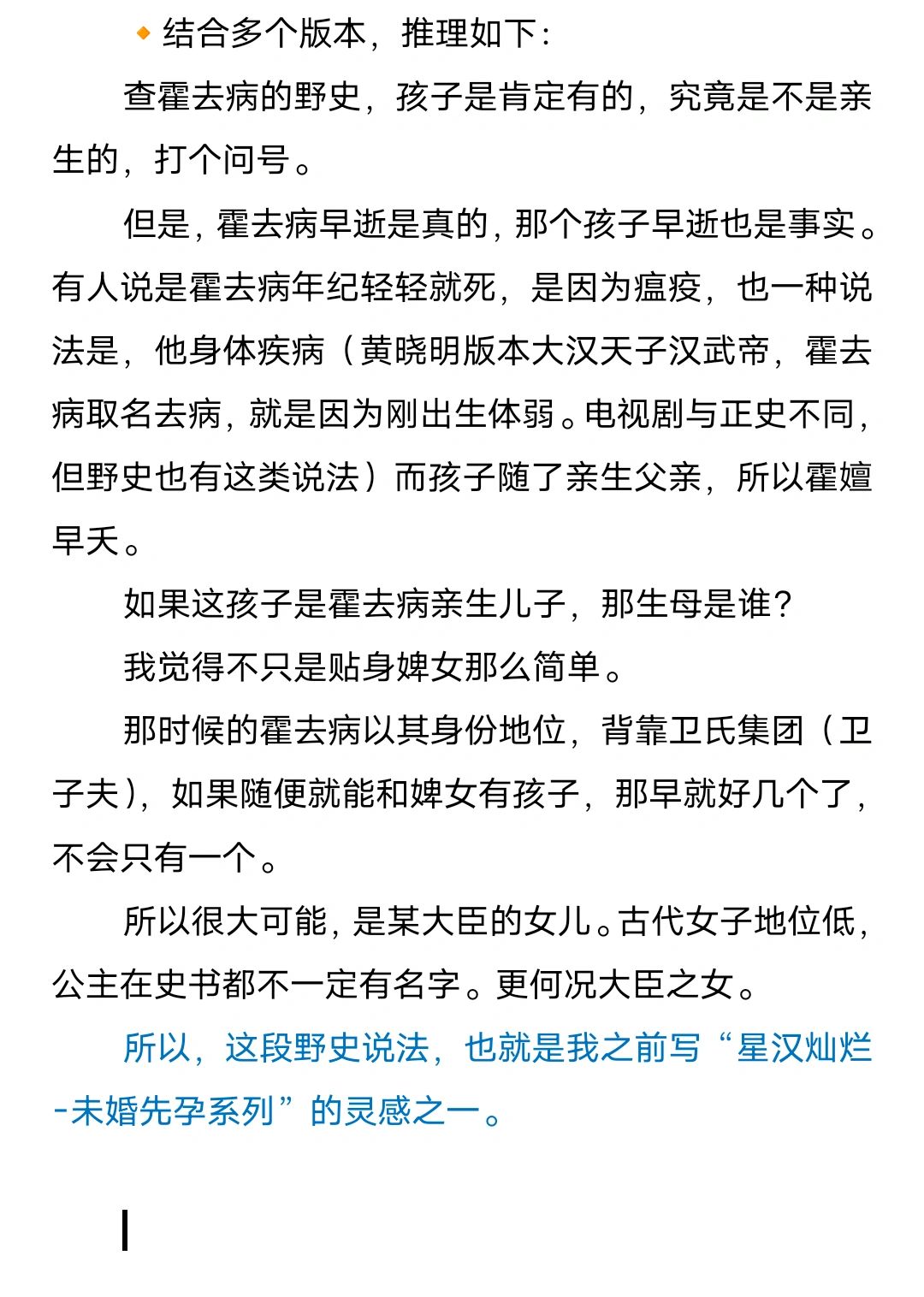🔸所以,这段野史说法,也就是我之前写“星汉灿烂-未婚先孕系列”的灵感之一。