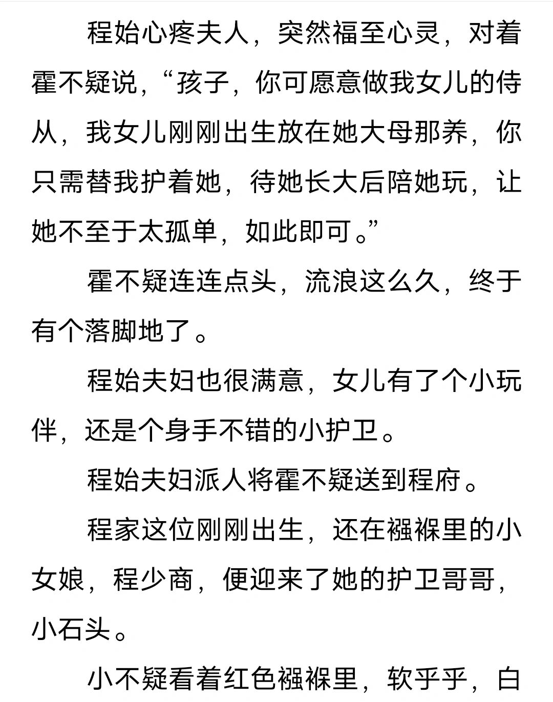 程家这位刚刚出生,还在襁褓里的小女娘,程少商,便迎来了她的护卫哥哥,小石头。
