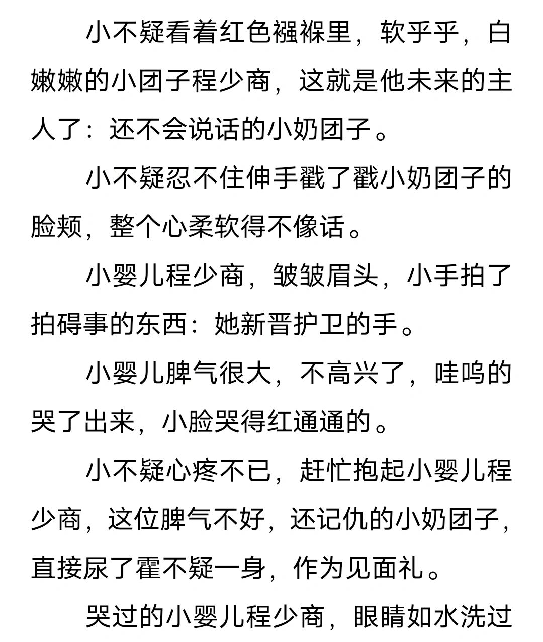 小不疑心疼不已,赶忙抱起小婴儿程少商,这位脾气不好,还记仇的小奶团子,直接尿了霍不疑一身,作为见面礼。