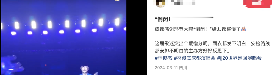 3月11日,歌迷苏先生反映林俊杰2024演唱会成都站,主办方组织混乱导致歌迷错过演唱会开头。