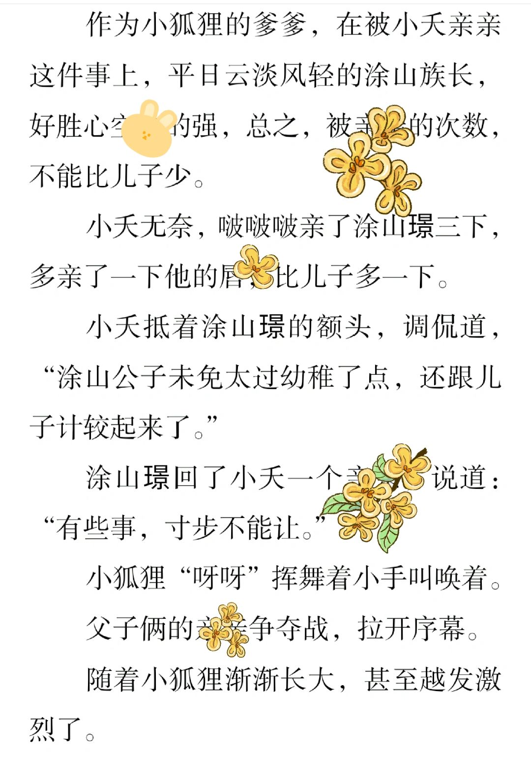 作为小狐狸的爹爹,在被小夭[飞吻R]亲这件事上,平日云淡风轻的涂山族长,好胜心(空)前的强,总之,被[飞吻R]亲的次数,不能比儿子少。