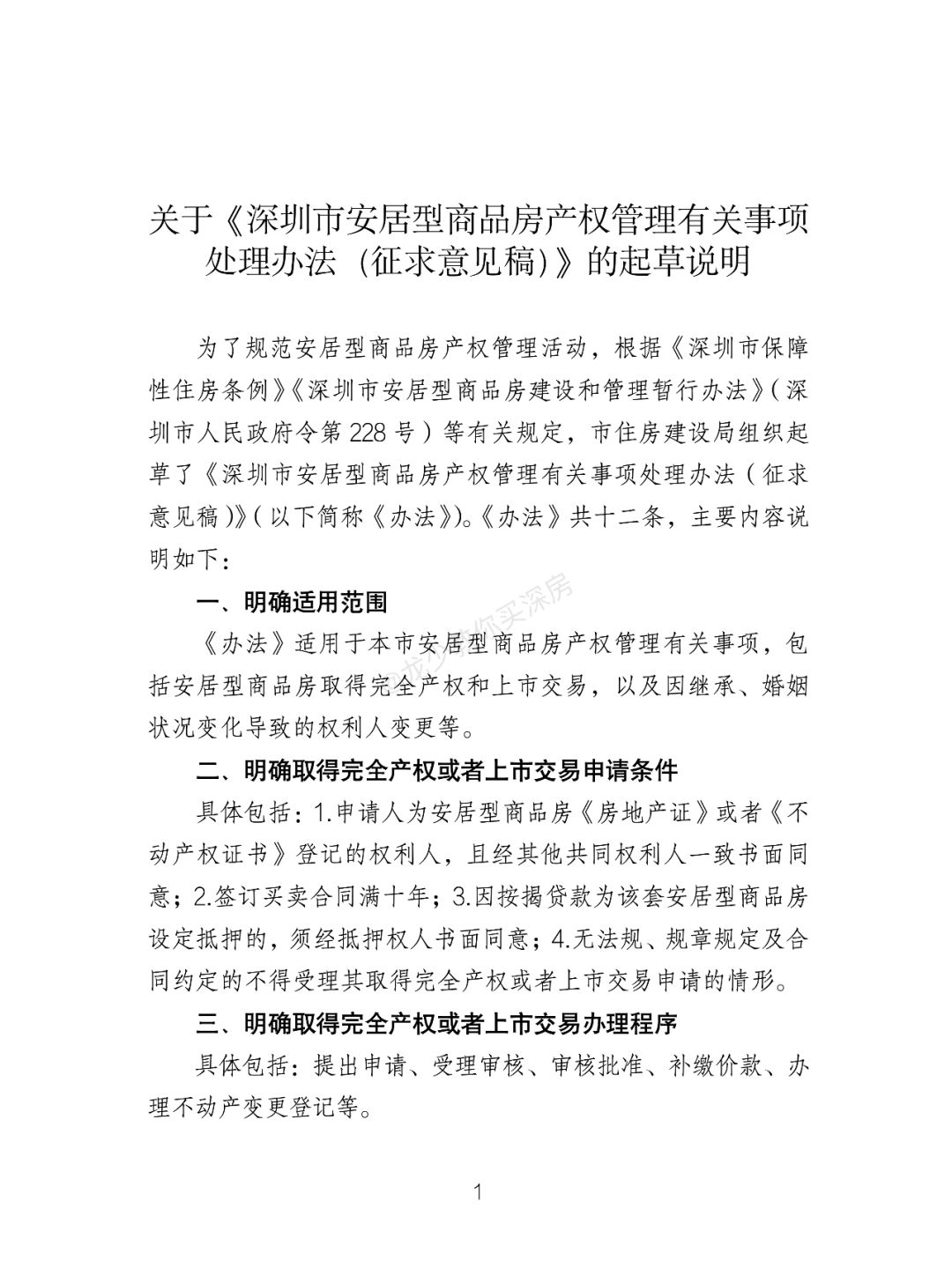 刚刚,深圳住建局公布《深圳市安居型商品房产权管理有关事项处理办法(征求意见稿)》,明确了安居型商品房取得完全产权规定: