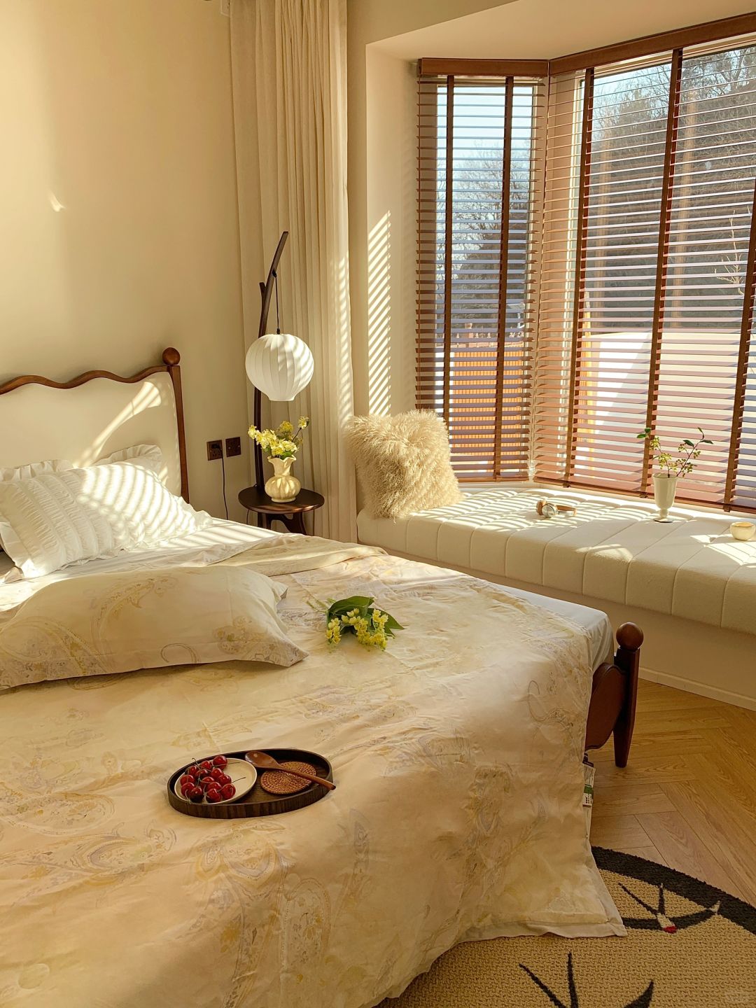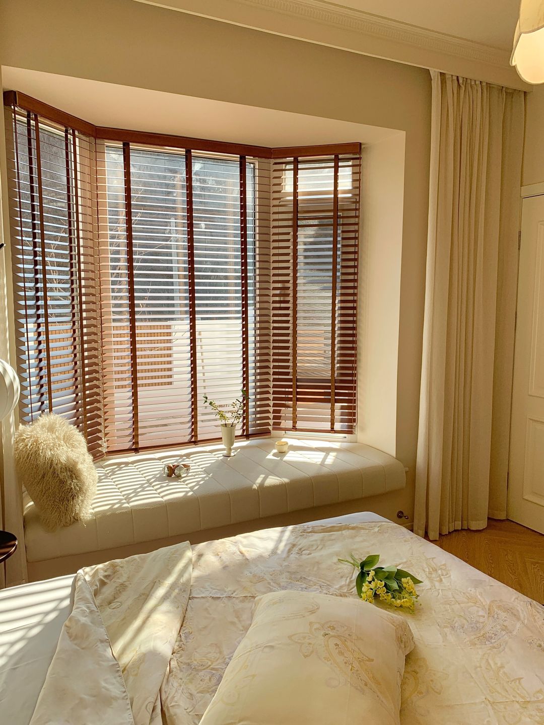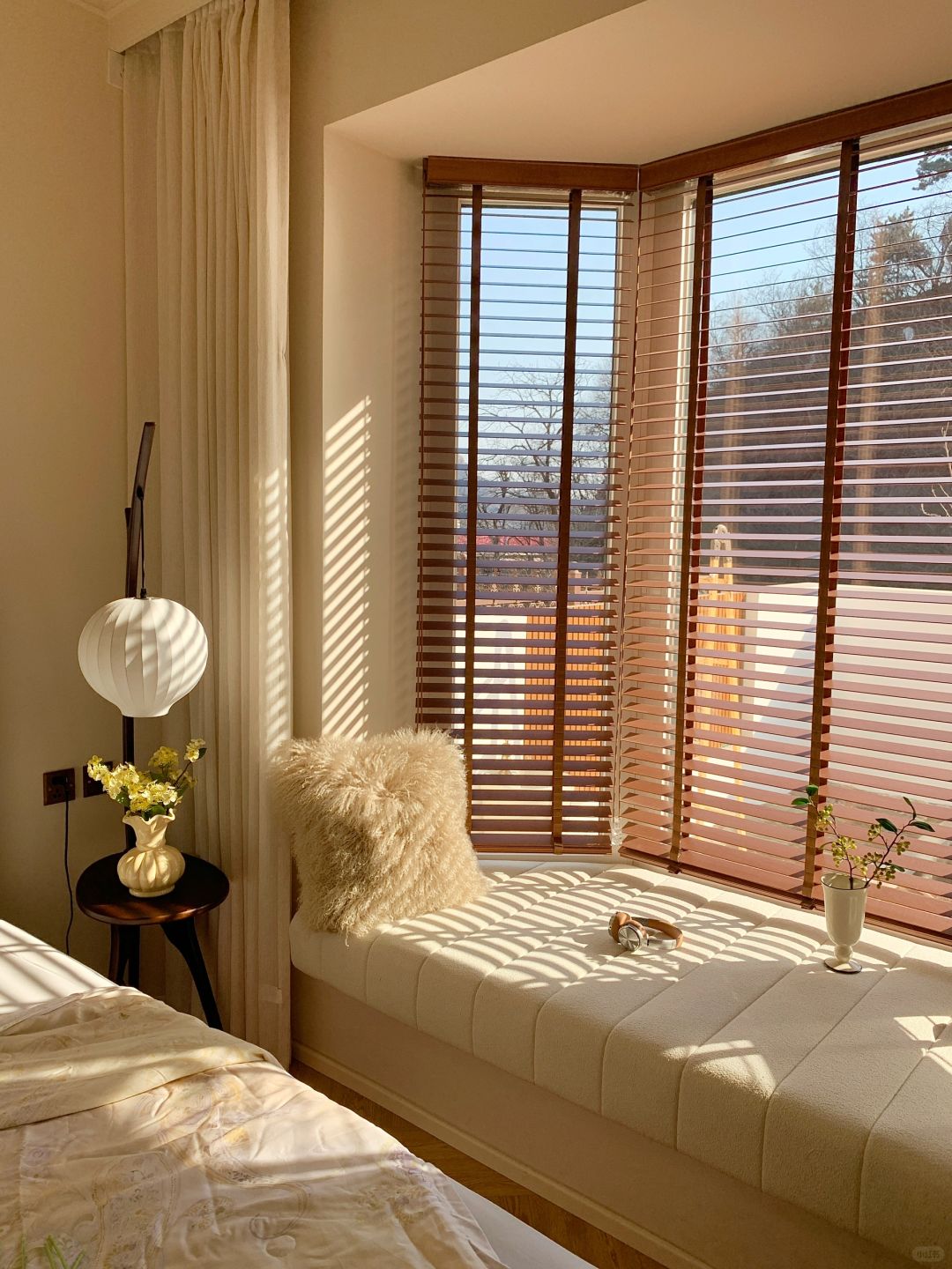 没办法我的卧室真的太舒服啦 阳光温柔的顺着木百叶洒到飘窗垫上 照在温馨的复古床上☀️ 无人打扰,继续赖床的日子爽!