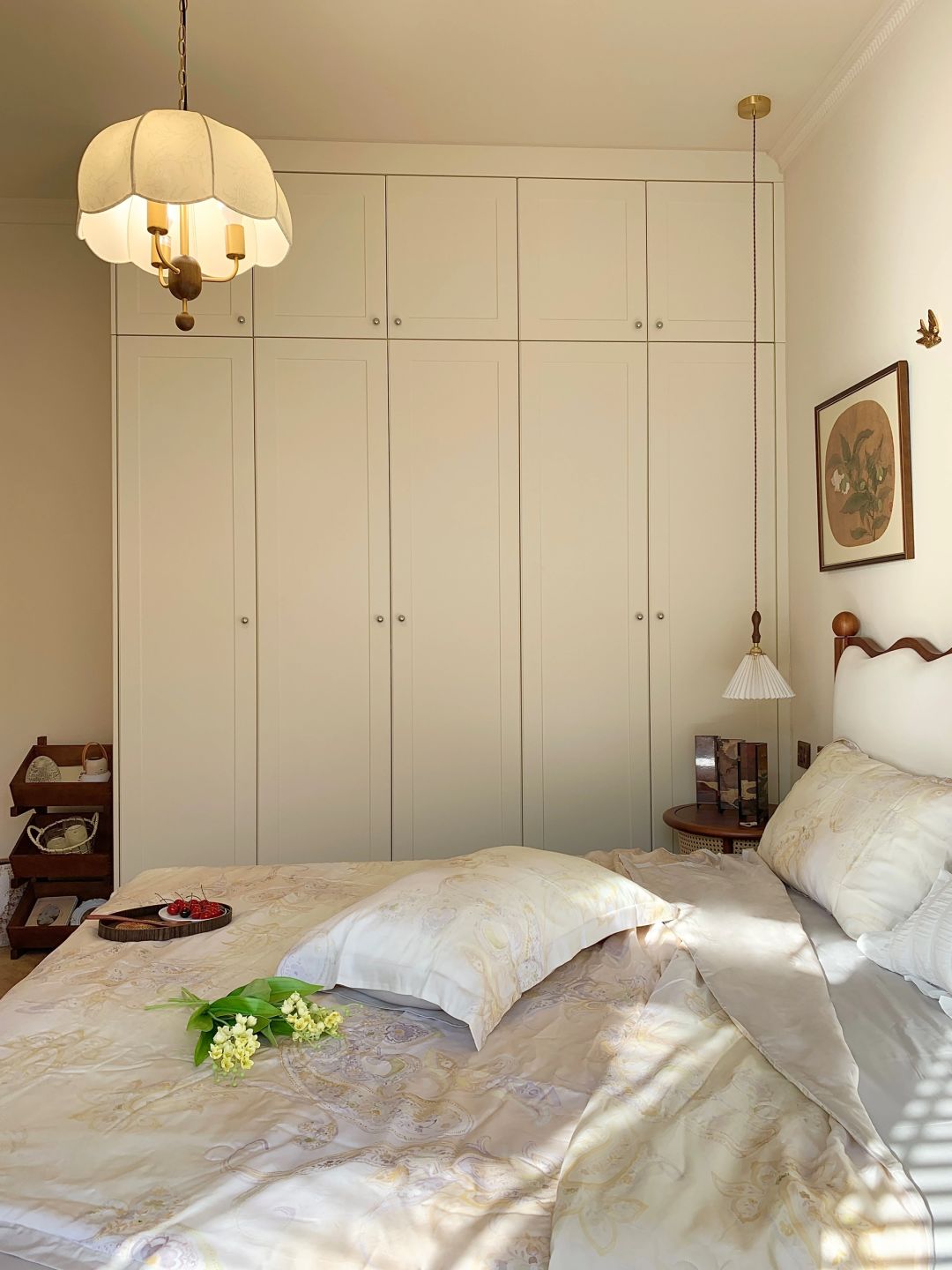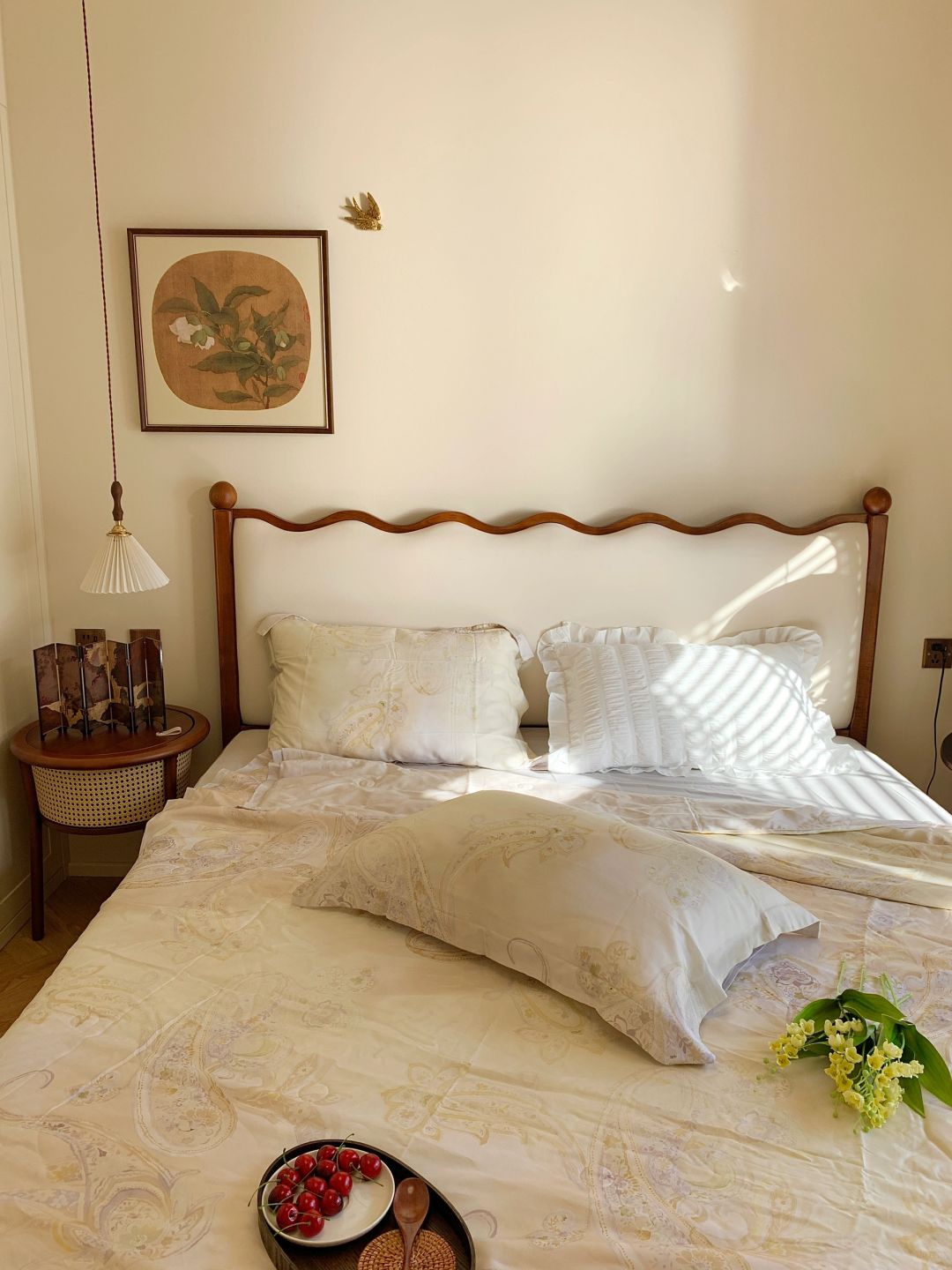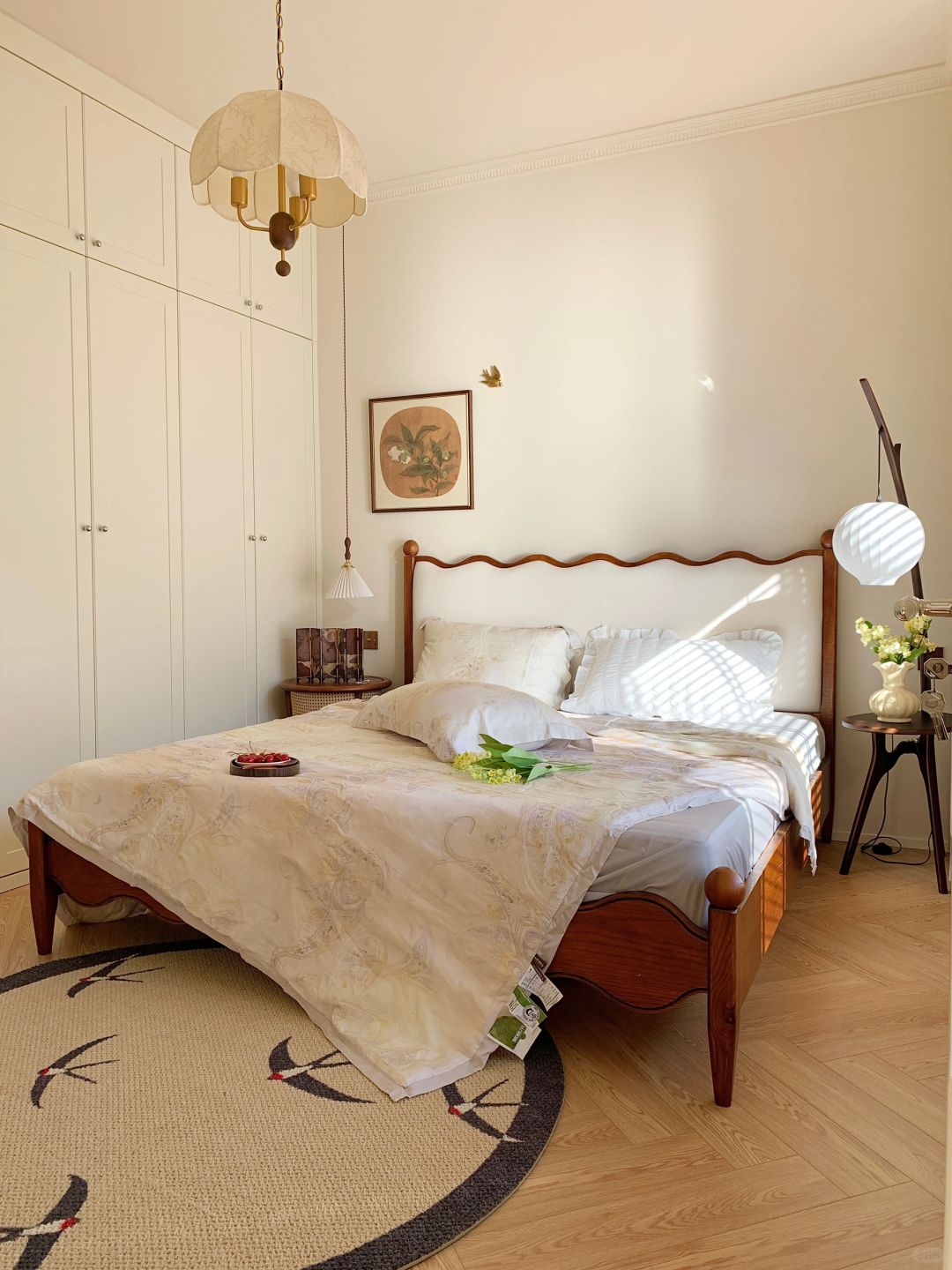 没办法我的卧室真的太舒服啦 阳光温柔的顺着木百叶洒到飘窗垫上 照在温馨的复古床上☀️ 无人打扰,继续赖床的日子爽!