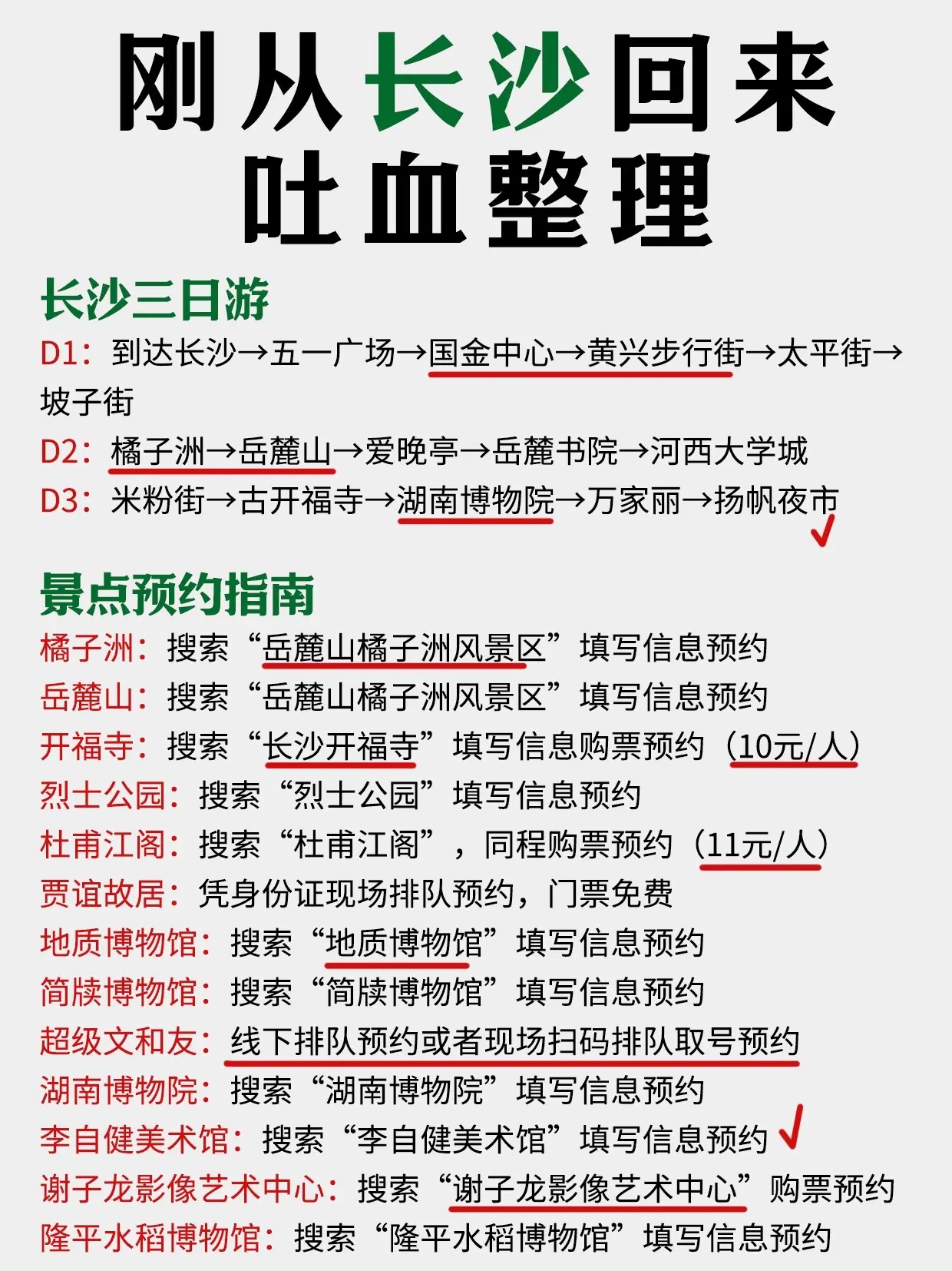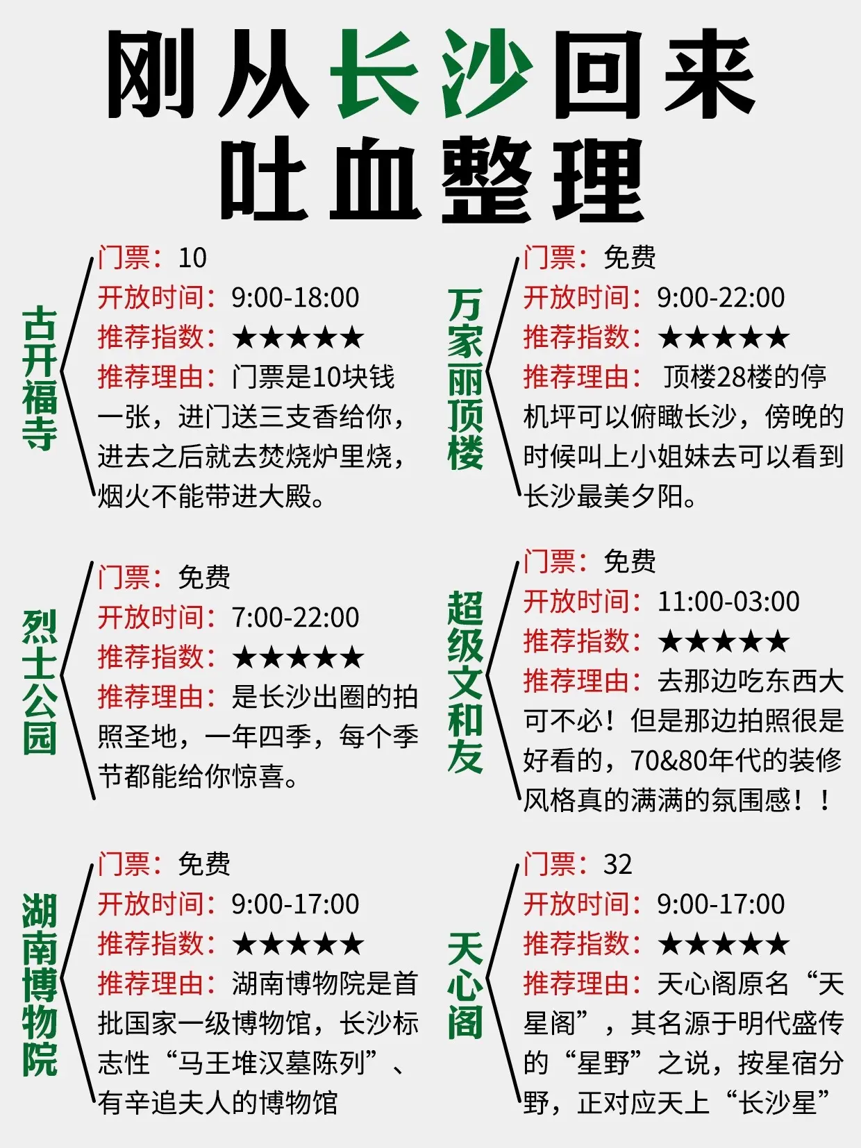 去完长沙后总结的旅游攻略,超详细!这里为想去长沙的朋友们整理了一份攻略,让你不花冤枉钱,希望出行前仔细看看哦,绝对用得上~长沙详细旅游攻略,想来玩的朋友们赶紧码住了!