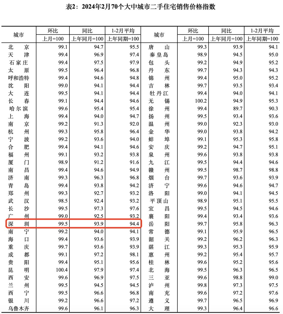 国家统计局数据:深圳2024年2月新房、二手房价格环比、同比继续下跌中!