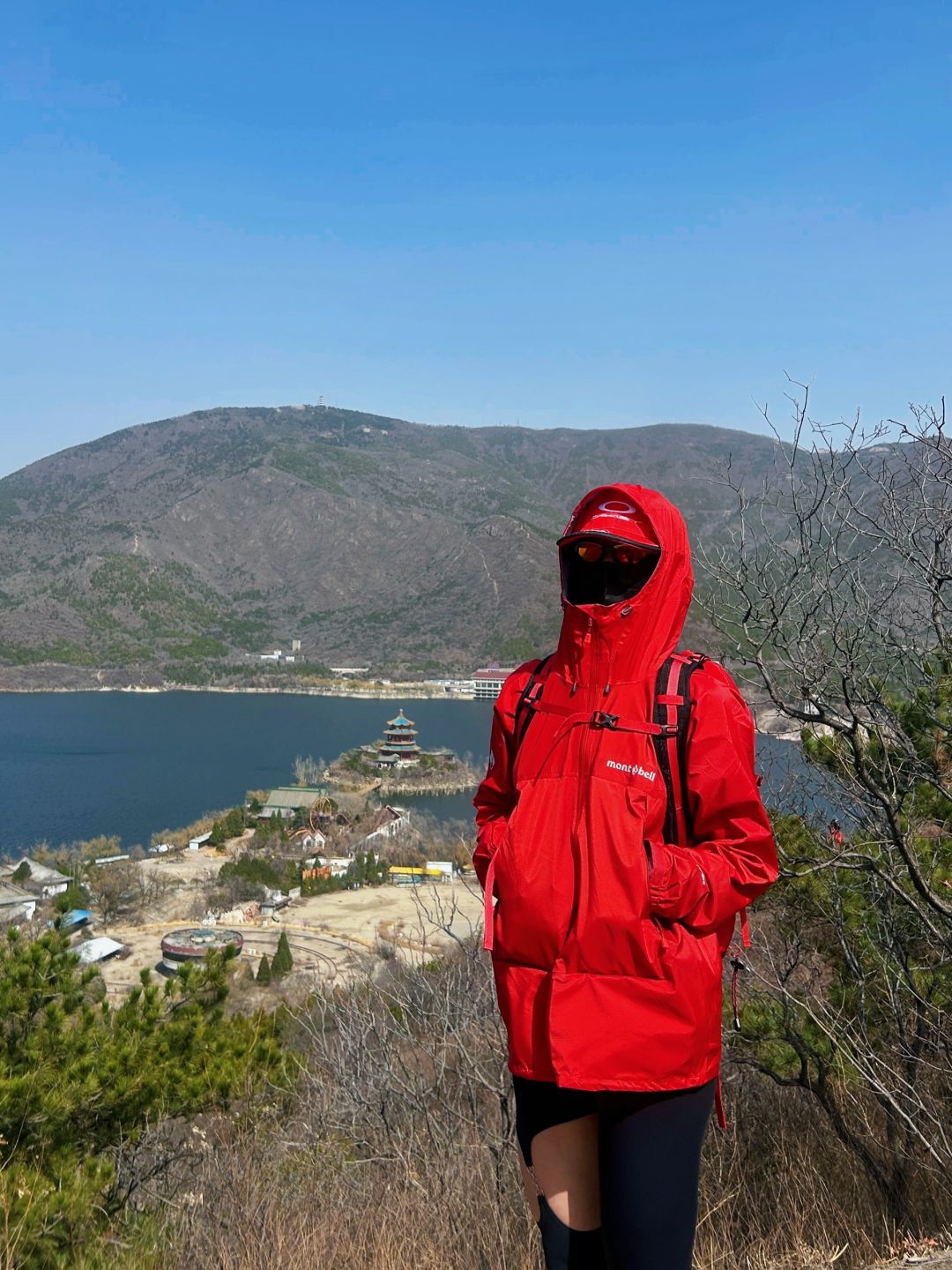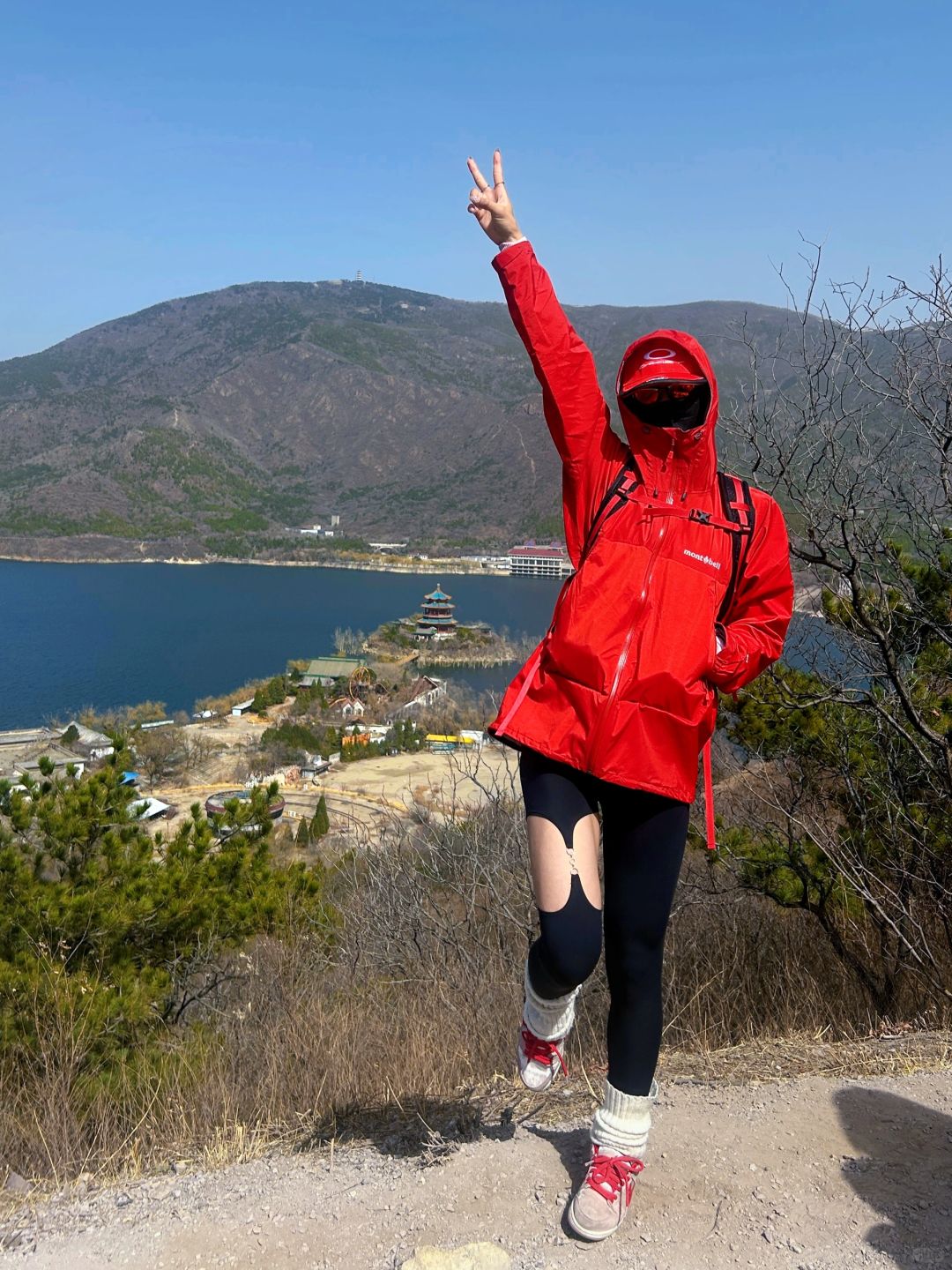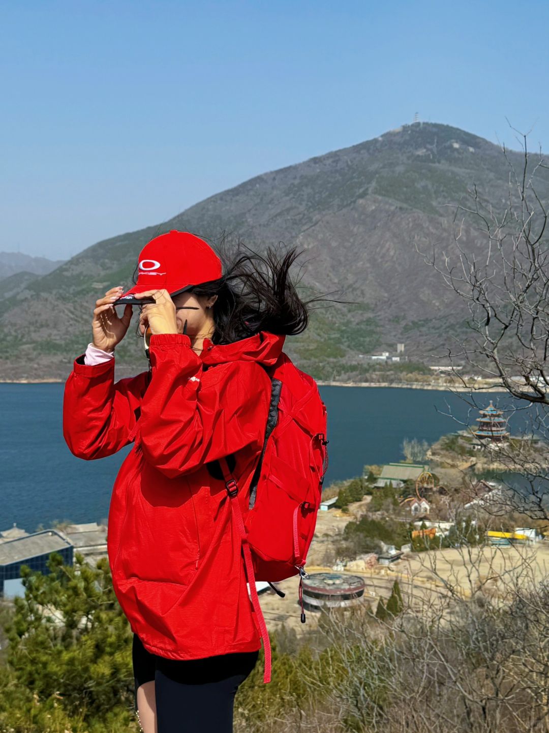 可以看到一边是十三陵水库的自然风光 也可以看到楼宇错落的城市景观 主要是整体最多4km,超级新手友好 不过今天的风是真大,头要被吹掉了 🅿️导航:卧龙堂,再往前走看到一个小铁门可以上山,或者导航中国石化会议中心,从大堂穿过从后山上山⛰️ 🧥穿搭:一个速干+一个软壳足够啦,不过最好带帽子🧢,因为春天真的风大,建议亮色比较出片,不需要徒步鞋👟 👕外套: 🧢帽子: 👟鞋子:情人节