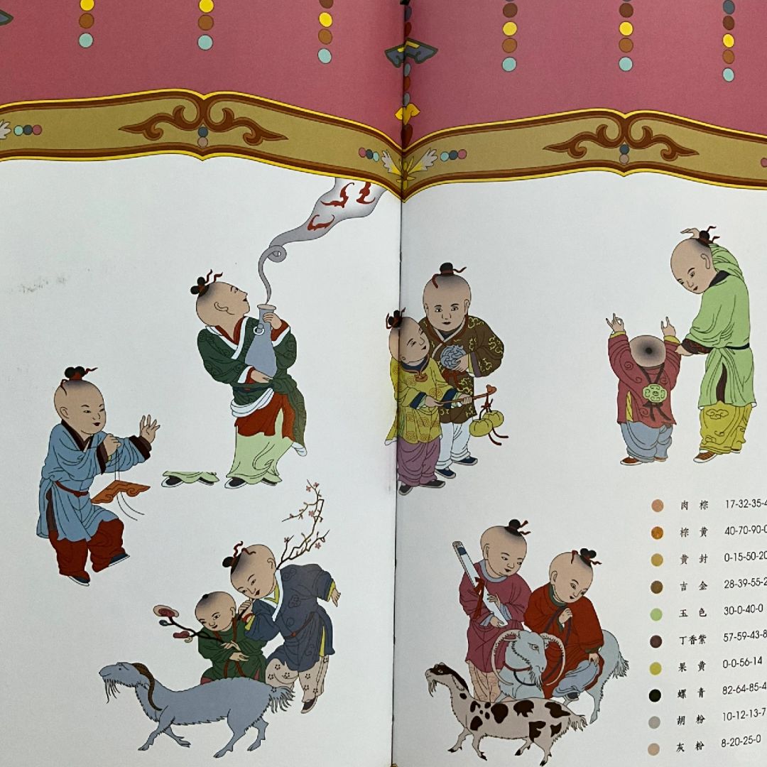 婴戏纹是明清时期流行的吉祥纹样。魏晋时期,壁画上的孩童射鸟、放牧、打果等,说明这一时期人们已开始描绘儿童的生活细节。唐代,瓷器上手执荷花的婴戏纹及壁画上“化生童子”像,说明婴戏纹开始迎合世俗祈子的心愿。宋代,婴戏纹进入黄金期,大量瓷器上出现了童婴嬉戏的图案,婴孩造型的器物也开始出现,寓意多子多孙、家业兴旺。明清时期,婴戏纹已十分常见,在民窑瓷器上大量出现,当时流行富有吉祥寓意的婴戏题材,如麒麟送子、四妃十六子、童子舞莲等。