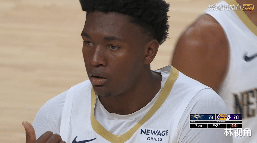 鹈鹕抓住机会反超比分,这一节还有4分多钟,小里快攻上篮得手,终于有运动战进球了,此前8中0,这时候回暖也不晚。