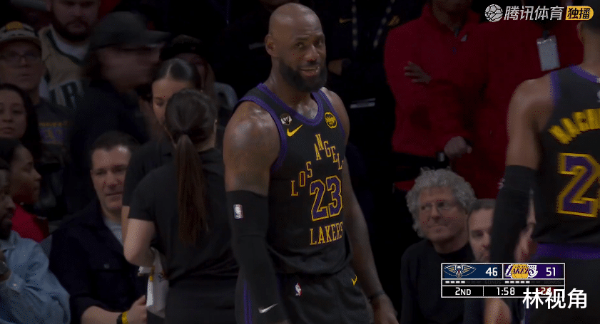 54-51,半场结束湖人暂时领先鹈鹕3分。
