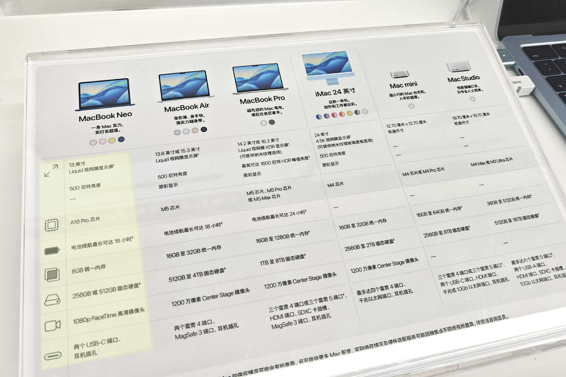 实体店里冷落在一旁的MacBook Neo,我在门店观察了一会,几乎无人问津。
