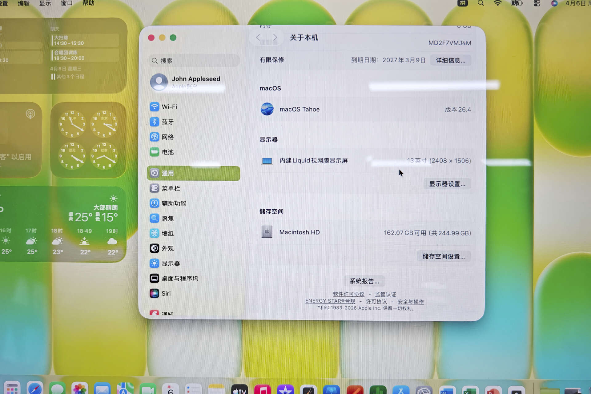 Neo最大的槽点都在屏幕上:13英寸、60Hz刷新率、2408*1506分辨率,还有那宽得能跑马的边框。在2026年,算得上是一块“复古”屏幕了。硬件上,苹果确实抠门。它用的是一块普通的WLED背光屏,不支持广色域。但色彩调教还算是的可以。