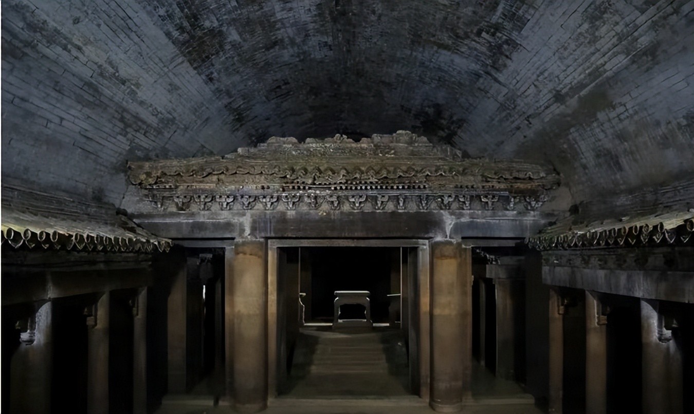建在地下的墓室模拟王府建造,规模巨大,装饰华丽。墓室大门象征王城的正门;二门代表王府宫殿的正门;二门之内正殿之前为广阔的正庭;左右两厢表示正殿两庑的左右二殿;正殿为重檐庑殿式建筑;之后为中庭、圜殿,两庑也有左右二殿;后殿为寝殿,全用石料砌成。墓室全长34.7米,最宽处10.5米,由三个砖筑的筒拱券组成,规模之大,令人感叹。