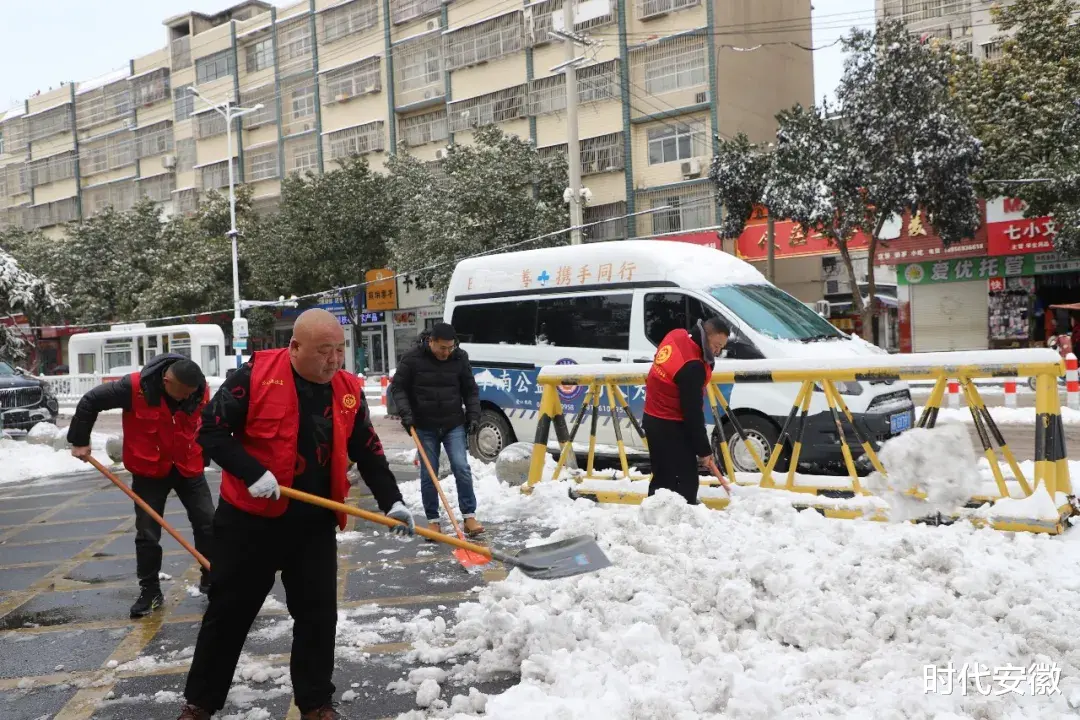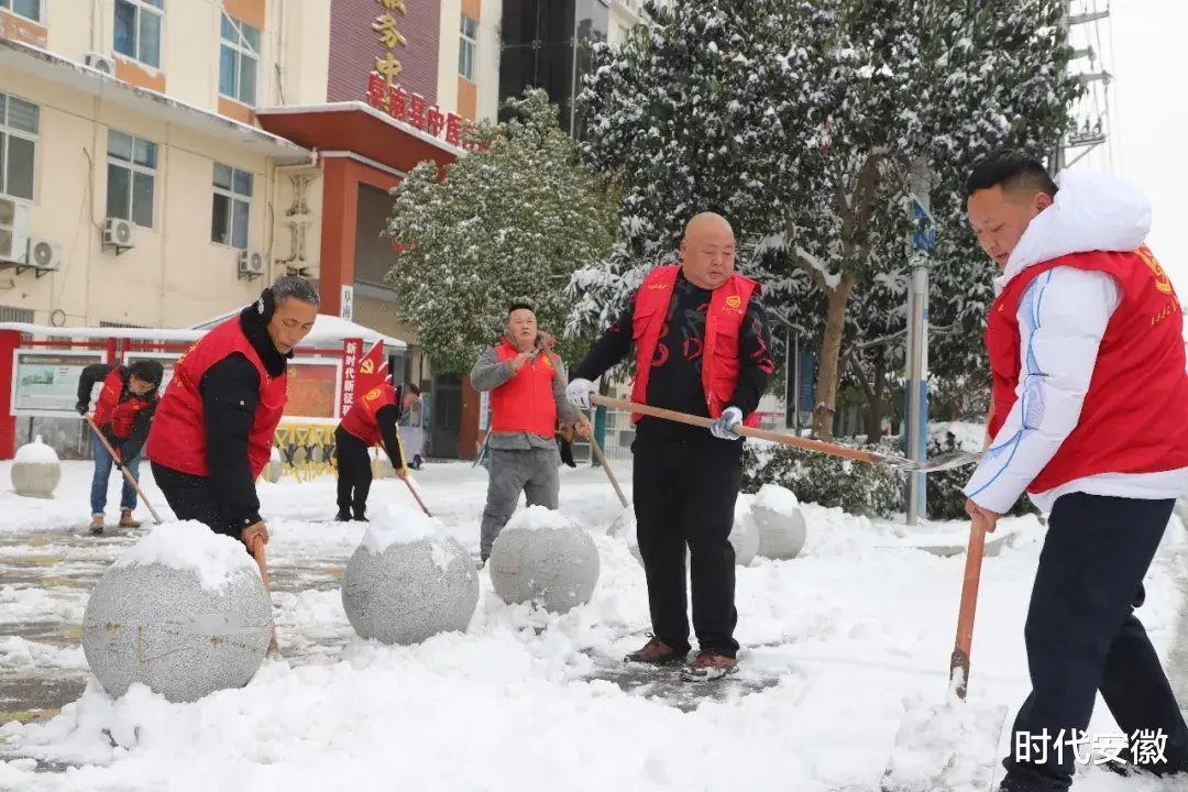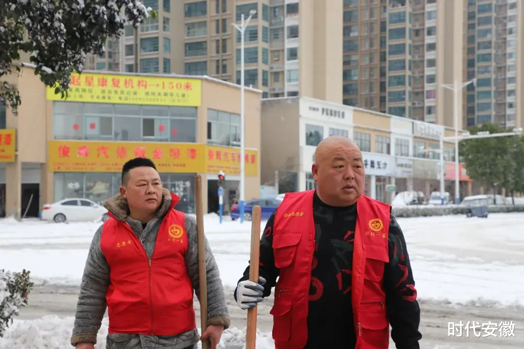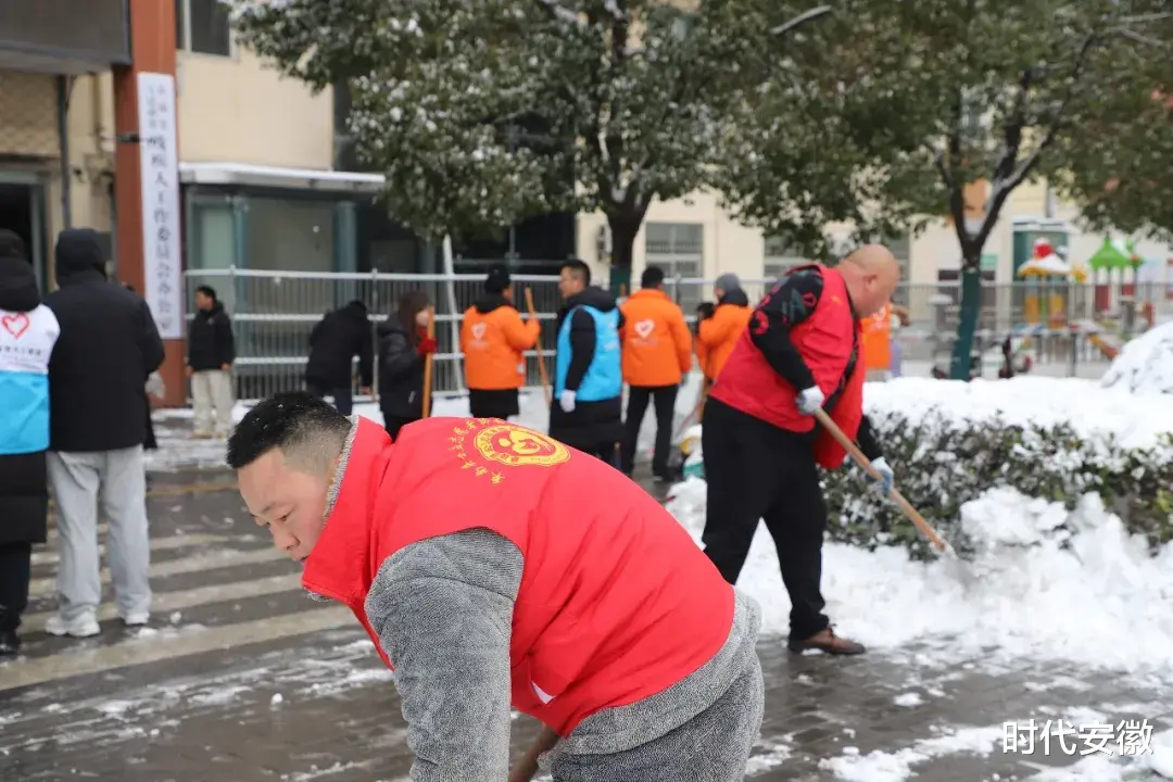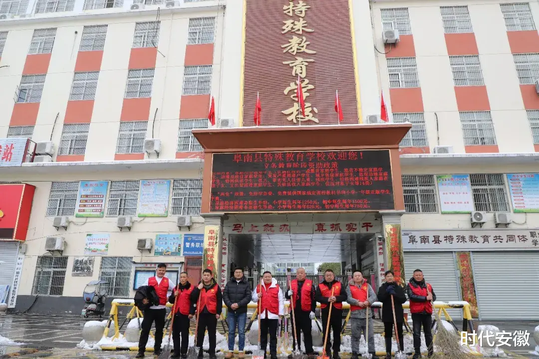 关键时刻,团县委的号召一经发出,阜南县公益志愿者协会的志愿者们迅速集结。红马甲的身影齐刷刷出现在特殊教育学校和县残联门前,铁锹、扫帚一应俱全,一场与冰雪赛跑的除雪行动,准时打响!
