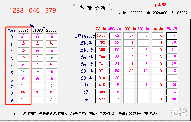 26081期:暄橙福彩3D综合条件(本期将在4月1日21:15开)一、上期回顾 ☆1、上期开奖号:8 0 2。2、和值=