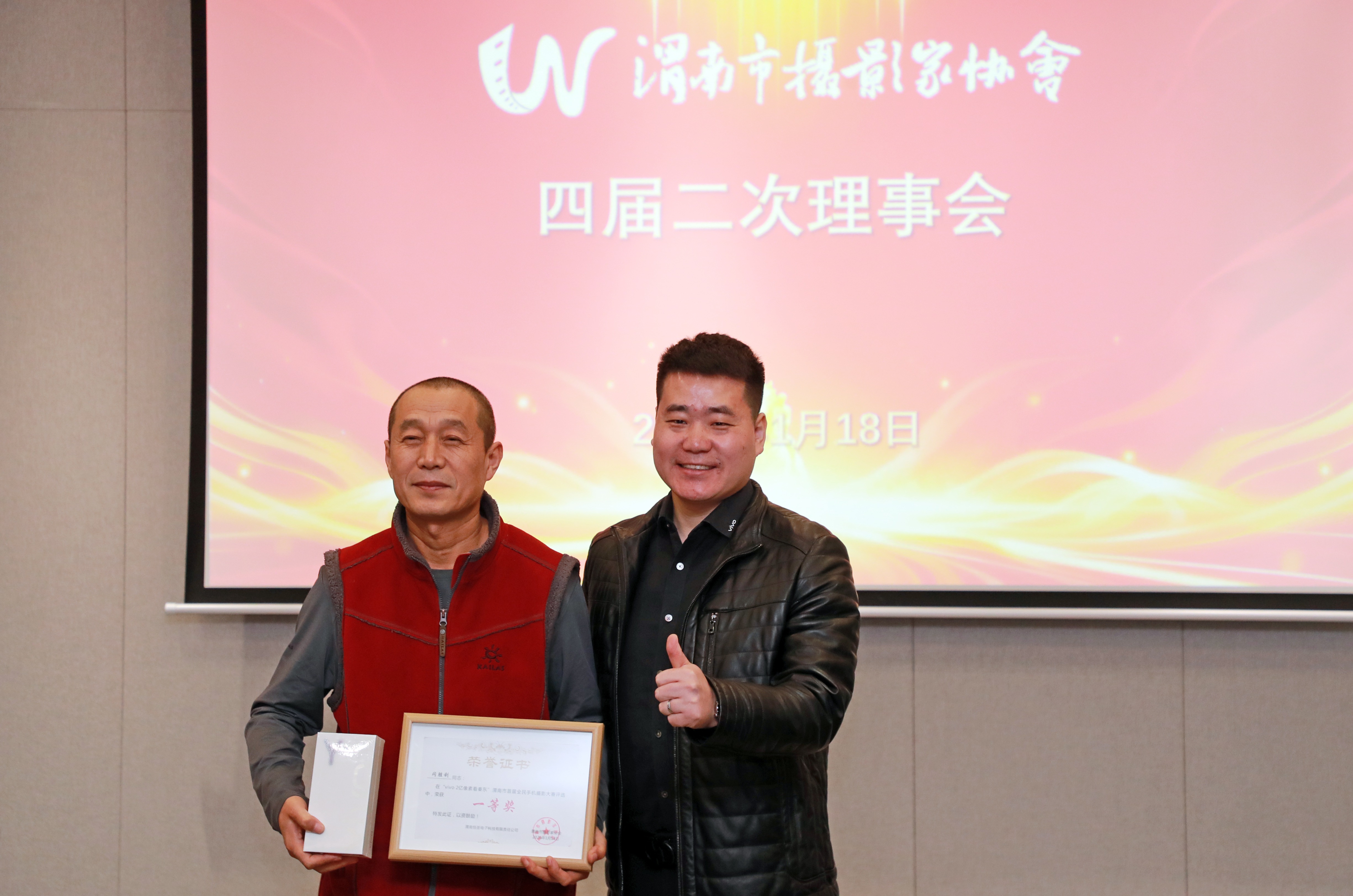 市摄协名誉主席王振杰为获评“先进集体”的富平县摄影家协会、临渭区摄影家协会颁发荣誉证书;