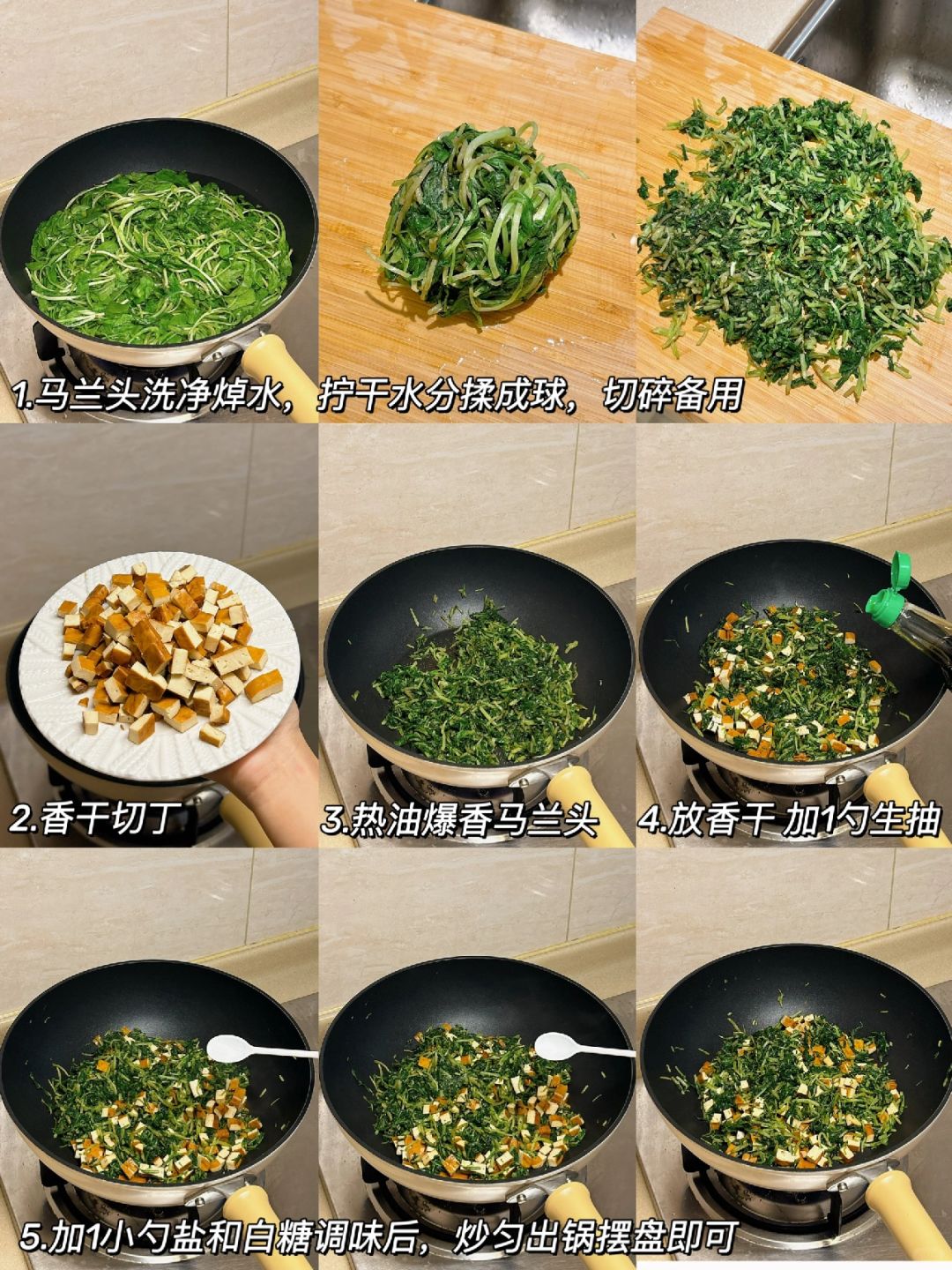 春天了就要吃春菜,今天打算做个自带清香的马兰头炒五香干 . 🥣马兰头炒五香干 食材准备:马兰头 五香干 [一R]马兰头洗净后焯水,捞出拧干水分切碎备用 [二R]热油倒入五香干炒香,再放入五香干 [三R]加1勺生抽,1小勺盐和白糖调味,炒匀出锅 🐔葱炒鸡 食材准备:鸡腿肉 小葱 [一R]调制料汁:2勺生抽+1勺蚝油+小半碗水 [二R]鸡肉切块抓匀腌制:1勺料酒+适量黑胡椒盐+1小勺淀粉 [三R]热油放鸡块煸香表面金黄,放葱花炒香倒入料汁炒至收汁出锅