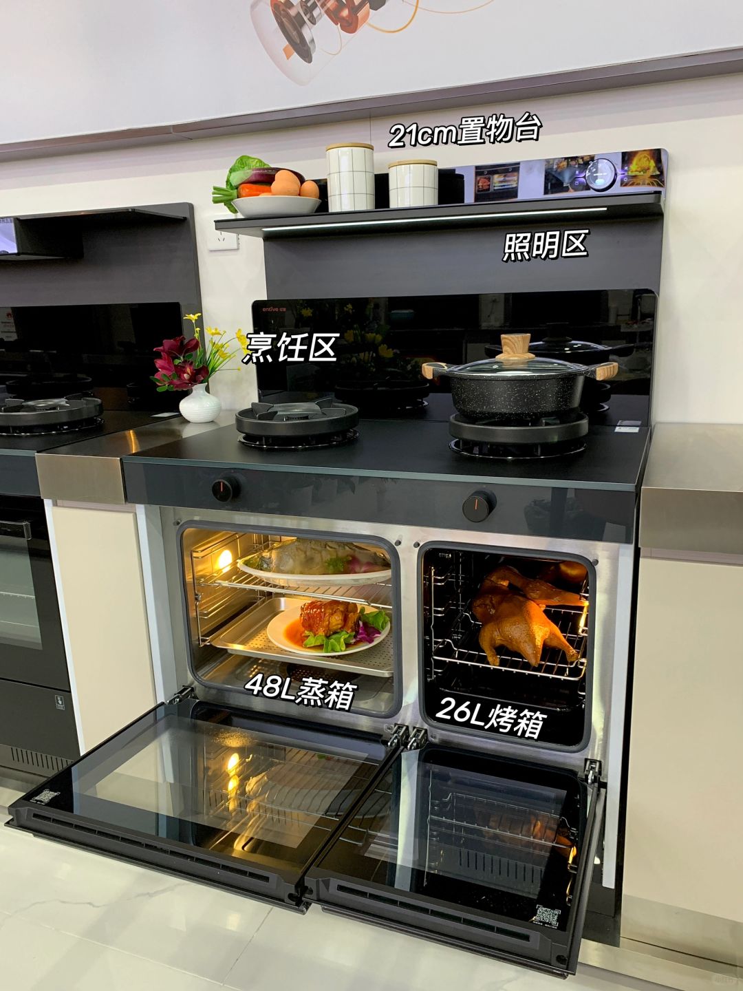 爸妈每天都要在家研究各种美食,这款集成灶的大吸力太适合中国的爆炒家庭啦,低空劲吸更是非常给力,20m³/min的爆炒风量,眼见着刚冒出来的油烟“嗖”的一下就被吸走了真的很神奇;另外搭配独立蒸烤箱(46L蒸箱+26L烤箱)蒸烤炒同时进行,不怕台面脏乱,高效省时,能用更短的时间做出一桌丰盛的饭菜;关键是它还好打理、易清洁,磁吸挡烟板可以拆卸下来清洗,蒸箱内部也可以蒸汽清洁,简直是懒人之光啦~