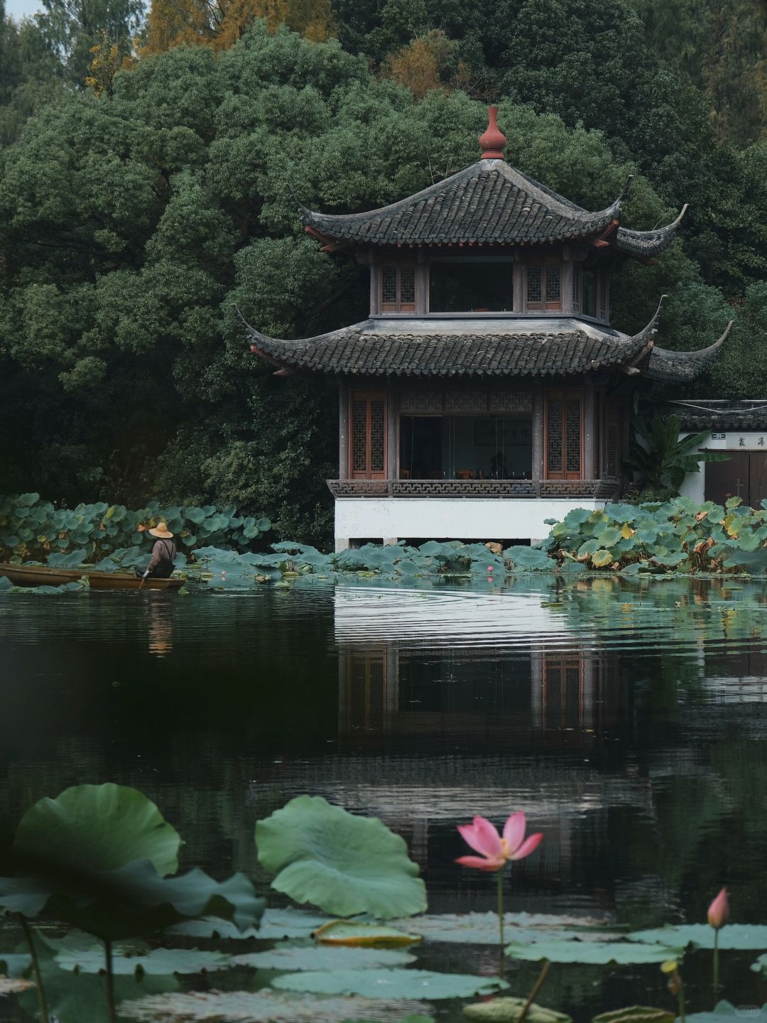 如果你刚好想来杭州 但又只有一天时间 那我推荐这条人少景美的一日游路线 . 📝路线:曲院风荷—西子香云—虎跑公园—苏堤—净慈禅寺—柳浪闻莺公园 . 📷景点: 曲院风荷:西湖老牌景点但依旧扛打,满眼绿意又有不少湖心亭,即使过了荷花季,也能体会到诗里的「接天莲叶无穷碧」 - 虎跑公园:杭州的绿光森林,负氧离子超标。门口不远处的两只老虎石像以及虎跑梦泉都很好出片 - 净慈禅寺:仅需10r就能get雷峰塔最佳机位。净慈禅寺很大很美,西湖十景之一的南屏晚钟也在寺内 - 柳浪闻莺公园:无论是绿色秘境新横河桥还是浮于西湖上的翠光亭,日景夜景都十分好看,这里也可以远眺雷峰塔华灯初上,沿着湖滨散步吹晚风,别提有多舒服~ . 🥣用餐: 如果曲院风荷逛累了,不妨将西子香云作为落脚点休息用餐,这家藏在下茅家埠的创意菜馆真的深得我心。从曲院风荷骑行在梧桐树下,或者乘坐公交车可以直达西子香云。从步入餐厅入口,就是一场中式园林美学的视觉盛宴。白墙灰瓦、池塘锦鲤、假山松柏,移步异景仿佛在水墨画里用餐。 - 当然餐品也足够惊艳。「桂花莲藕韵」将金秋九月限定的桂花配上甜而不腻的藕,直接将满陇桂雨体现在菜品上。「福禄鹅肝配葱油饼」入口即化的鹅肝与咸脆的葱油饼搭配简直完美,口感丰富细腻。「湖蟹白水洋豆腐」吸饱了汤汁的白水洋豆腐、蟹黄饱满的湖蟹,真的太鲜美了。「梅干菜仔排」每块肉都带骨,肥瘦相间,一点也不腻,一口下去不要太满足! . 这条路线基本可以通过骑行或是公交完成,从曲院风荷到虎跑梦泉,从南屏晚钟到柳浪闻莺,一天时间就能将西湖十景打卡一半。 .