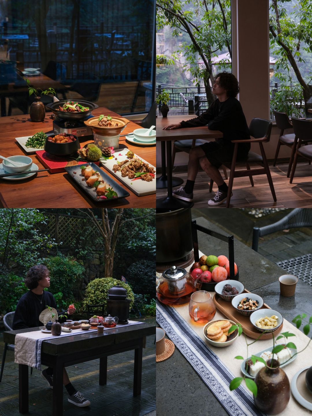 淌过将军关 翻越龙王山 我们在浙北大峡谷的尽头 第四纪冰川遗迹深溪大石浪边 找到了现实版的仙侠世界 . 一场秋雨后 山气氤氲 藏于云深处的自在深溪 在山岙上显现 推开大门 仿佛走进了世外桃源 悬崖 瀑布 竹海 溪涧 在没有天花板的绿色原野里 隐入山林 避世放空 . 🛋️:澍霖·自在深溪 📍:湖州市安吉县报福镇深溪村胜地自然村41号 . 自在深溪悬挂于峡谷半山腰 是一栋庄园式度假民宿 无论是大堂还是客房内部随处可见 古董器皿、中美院绘画及书法 处处呈现出东方中式美学 房间内舒适的床品 以及可以看到远山的落地窗 让自然山野引入梦来 . 民宿拥有一个观景露台及空中茶吧 峡谷及溪涧净收眼帘 在后方的庭院围炉煮茶 在山脚下的岩石滩涂烧烤溯溪 当然,也不能错过自在深溪 大厨的晚餐 酥而不烂、香而不膳的土烧安吉山羊肉 时令山珍栗子烧肉、高山核桃仁配脆炸鲜奶或在空山雨后,或在深秋归暮 坐拥美食美景,乃人生快事 . 也可以登顶后山的竹海深处 见远处山峦叠翠 在负氧离子爆棚的山顶 做一次冥想或是瑜伽 过上一天「半壁见海日, 空中闻天鸡」的隐居生活 .