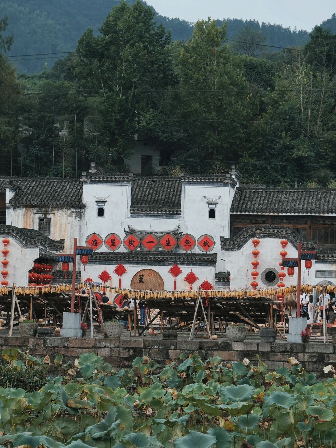 没宏村商业,也没西递出名,黄山脚下这座避世小众古村落「呈坎」,大多数人来黄山都会错过这里。但这里却成为我心中江南白月光版的存在。 . 呈坎是天然八卦风水宝地,便有了「游呈坎,此生无坎的」的说法。同时也是世界自然与文化双遗产,国保文物21处,也被誉为「国宝之乡」。 . ⛰️:呈坎古村落 🎫:107元 📍:安徽省黄山市徽州区呈坎镇 . 📝游玩路线:呈坎景区南门入口—崇恩堂—八卦八门—祭台—永兴湖—晒秋广场—呈坎古村落群(罗兴堂、燕翼堂、贞靖罗东舒先生祠等)—北门出口 . 📷关于景点: 贞靖罗东舒先生祠:呈坎最值得参观的景点,看完值回一半票价。罗东舒先生祠建成于明万历,无论是堂内的金丝楠木、400岁银桂、眼花缭乱的木雕彩绘、石雕及斗拱、董其昌亲笔“彝伦攸叙”巨型牌匾。都使罗东舒先生祠成为名符其实的「江南第一名祠」。 - 燕翼堂:始建于明嘉靖,为扬州八怪之罗聘的祖宅。该宅两进三层,整齐的窗牑、精美的斗拱木雕都是看点,建筑也如展开的燕子翅膀,故名「燕翼堂」。 - 永兴湖:呈坎古镇中心的湖泊,白墙黛瓦的徽派建筑以及壮观的晒秋景象让这里成为最主要的拍摄点。远山、屋舍、藕花池、以及几只大白鹅,走进永兴湖仿佛走进了桃花源秘境。 .
