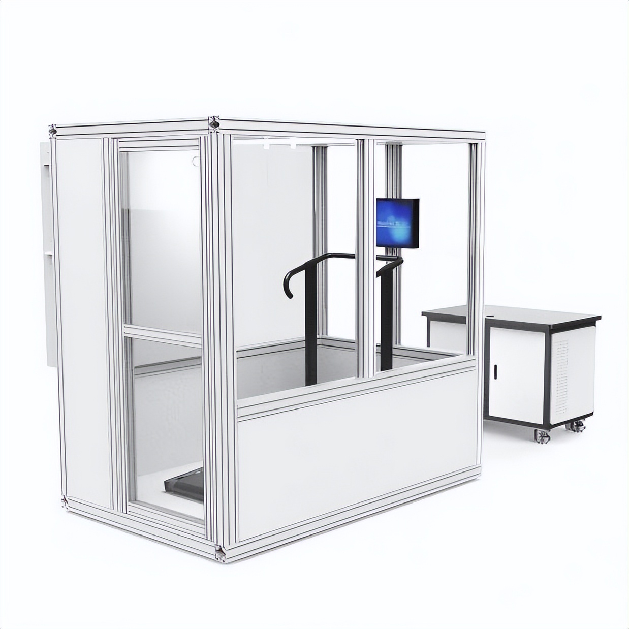 测试仓:封闭空间,用于模拟实际使用环境。其尺寸通常为长≥200cm、宽≥130cm、高≥215cm,配备可视化操控系统,可与工作站控制软件同步。测试仓内设置无横向气流干扰区域,受试者头部上方30cm处风速≤0.2m/s,横向气流测试时风速约为2m/s(来自前方、后方和侧方)。