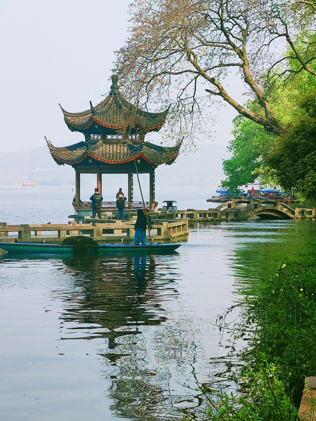 👉雷峰塔:远观足矣,我去的位置是夕影亭附近,古桥折折回回蜿蜒水中,一颗枯树,一座古亭,和雷峰塔形成一副山水画卷,中国美完美诠释.