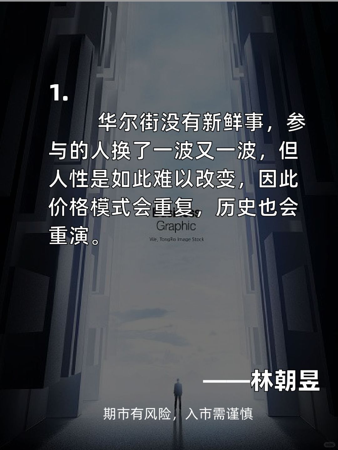 1. 华尔街没有新鲜事,参与的人换了一波又一波,但人性是如此难以改变,因此价格模式会重复,历史也会重演。
