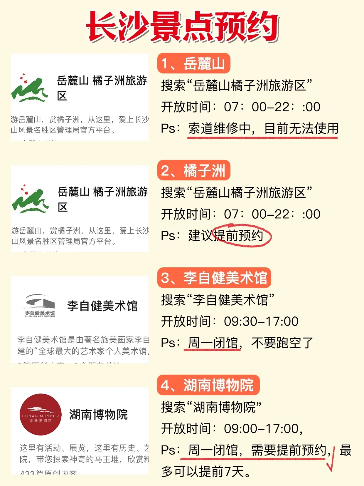 被问了1800遍的长沙手绘地图,速码!别催啦别催啦!你们要的长沙手绘地图来咯,一眼清楚的景点分布,是不能帮助各位宝子们规划好路线呀~快点码住吧! - 长沙三日游路线推荐 D1:橘子洲→五一广场→太平街→黄兴步行街→南门口→天心阁 D2:岳麓山→岳麓书院→河西大学城→李自健&谢子龙艺术馆 D3:湖南博物院→米粉街→烈士公园→万家丽→扬帆夜市