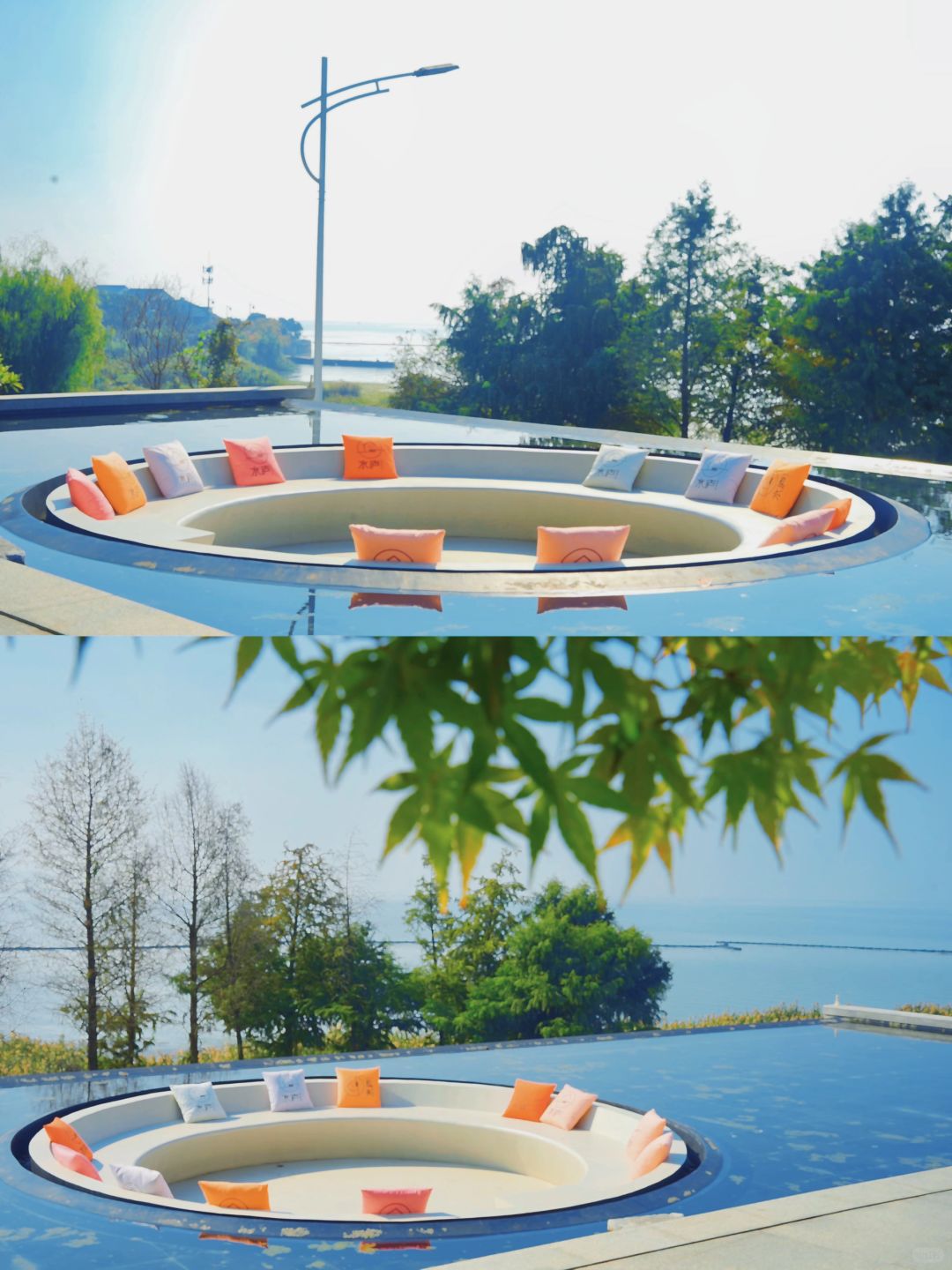 ❇️泳池&钢琴:这里的泳池区域是夏日天堂。清澈的泳池水面、彩色的浮球、舒适的躺椅,坐在钢琴🎼前面对一整片的太湖,一切都让你感受到度假的轻松和愉悦☀️