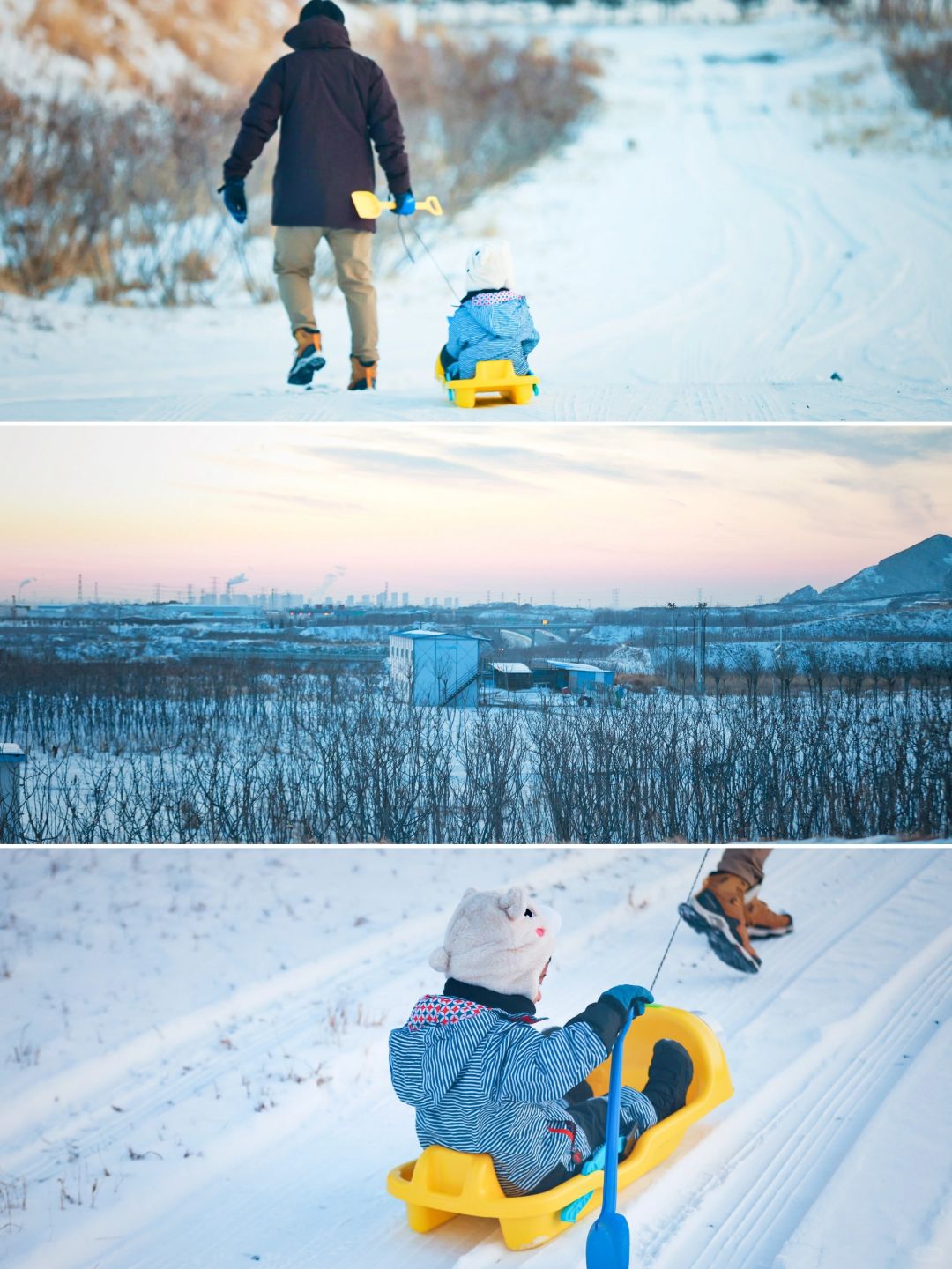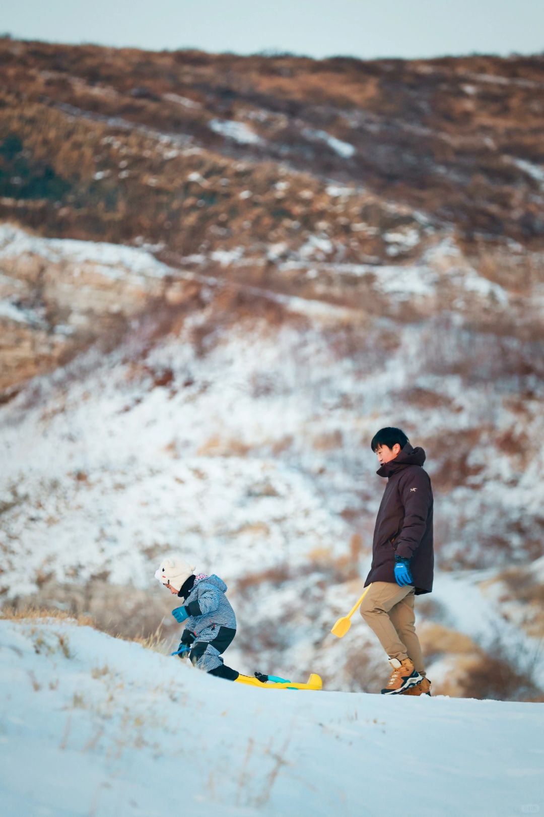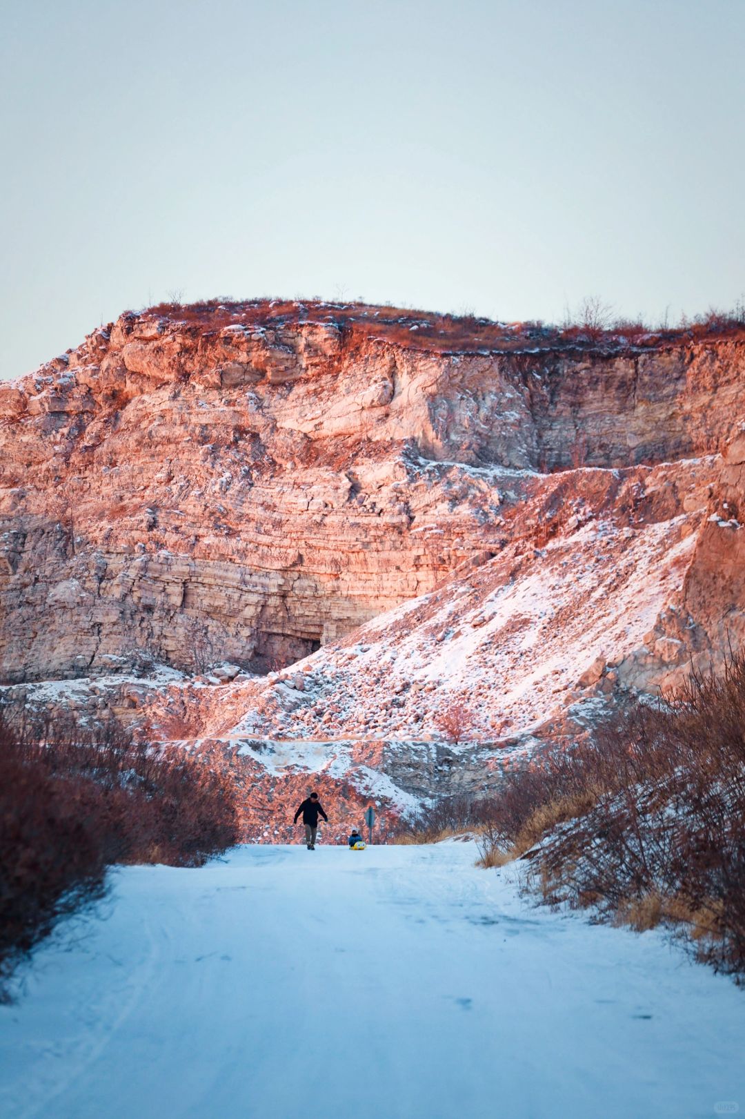 我们家的小共识, 只有没有大风大雨大冰雹, 基本会正常户外出行, 上班/上学族5天太圈了, 迫切需要出去透透气! . ❄️上周带幼崽去了一个种草很久的地方,距离北京仅有一小时车程,有着截然不同的景色,矿山、荒芜的草坪、秋天的红叶和羊群,呈现的是一幅戈壁风格,蒋福山是燕山余脉,曾是紫砂陶瓷页岩矿区,也是廊坊市唯一的山区,现在雪后的景色真是绝了! . ✔️峡谷里的天然雪道 ✔️山坡上的厚厚积雪 ✔️太阳落山时返程的羊群 ✔️站在山头向西看的落日余晖 ✔️承包了山头感觉真好啊 . ⏺高的导航蒋福山红叶谷营地,我们南三环过去大概1小时,到了之后一路向营地开,然后遇到土坡,轿车就停车走进去,越野车可以开进去。 . 🌁本周去上山的积雪估计会少一些,但是地面上的肯定还很多,毕竟最近白天最高气温才-12,周末没风,武装到牙齿可以冲了! . ❤️我是CC,用相机记录幼崽成长过程,每周和景爸带着景宝溜达!露营、徒步、爬山、逛胡同、逛公园等各种户外活动,喜欢的话记得关注哦!