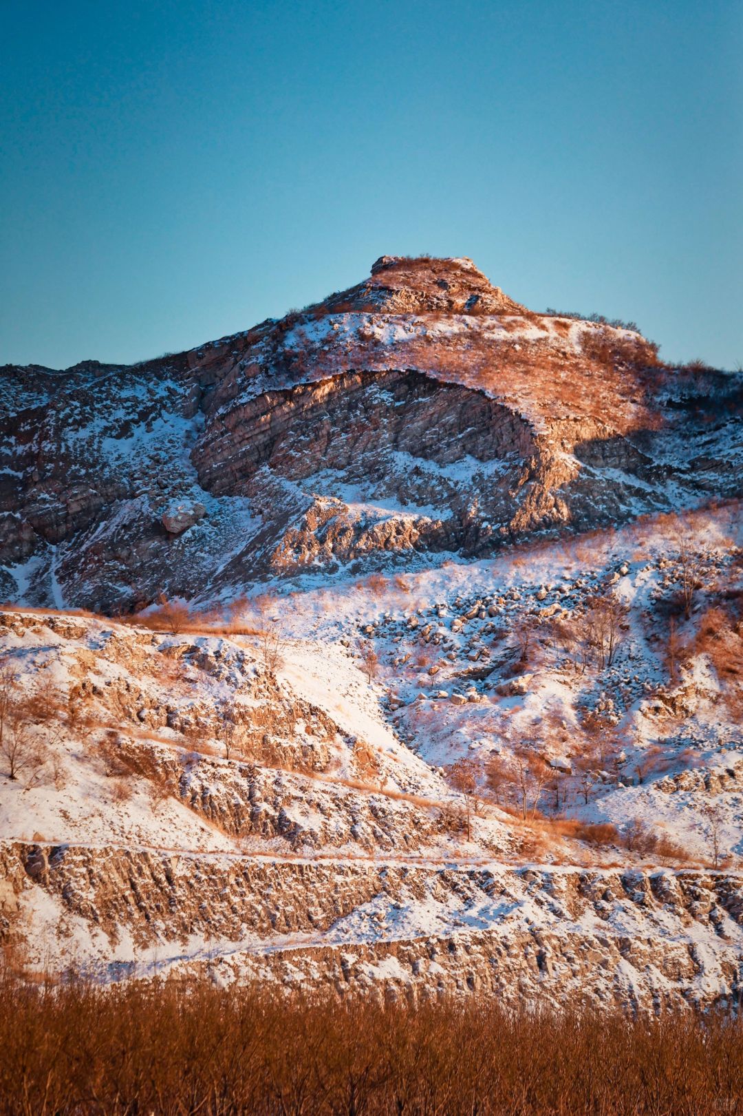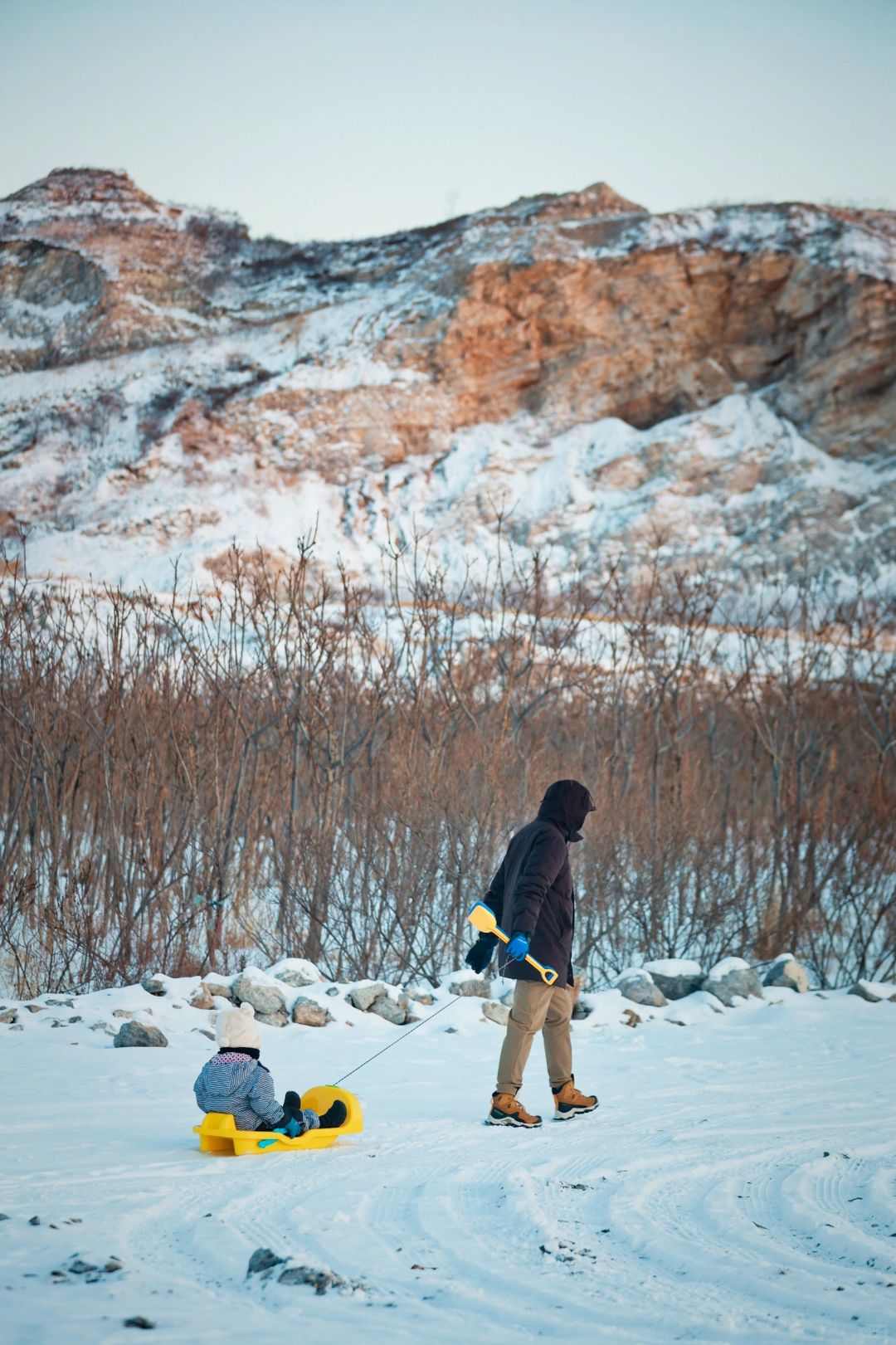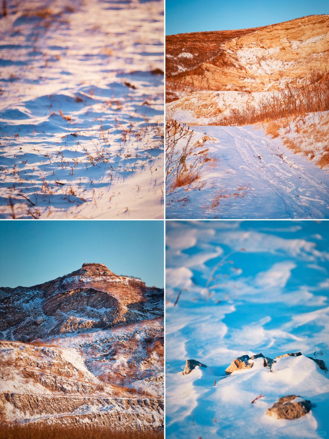 我们家的小共识, 只有没有大风大雨大冰雹, 基本会正常户外出行, 上班/上学族5天太圈了, 迫切需要出去透透气! . ❄️上周带幼崽去了一个种草很久的地方,距离北京仅有一小时车程,有着截然不同的景色,矿山、荒芜的草坪、秋天的红叶和羊群,呈现的是一幅戈壁风格,蒋福山是燕山余脉,曾是紫砂陶瓷页岩矿区,也是廊坊市唯一的山区,现在雪后的景色真是绝了! . ✔️峡谷里的天然雪道 ✔️山坡上的厚厚积雪 ✔️太阳落山时返程的羊群 ✔️站在山头向西看的落日余晖 ✔️承包了山头感觉真好啊 . ⏺高的导航蒋福山红叶谷营地,我们南三环过去大概1小时,到了之后一路向营地开,然后遇到土坡,轿车就停车走进去,越野车可以开进去。 . 🌁本周去上山的积雪估计会少一些,但是地面上的肯定还很多,毕竟最近白天最高气温才-12,周末没风,武装到牙齿可以冲了! . ❤️我是CC,用相机记录幼崽成长过程,每周和景爸带着景宝溜达!露营、徒步、爬山、逛胡同、逛公园等各种户外活动,喜欢的话记得关注哦!