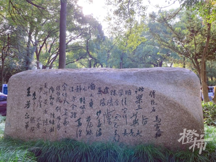 这块石碑上篆刻着知名人士的名字