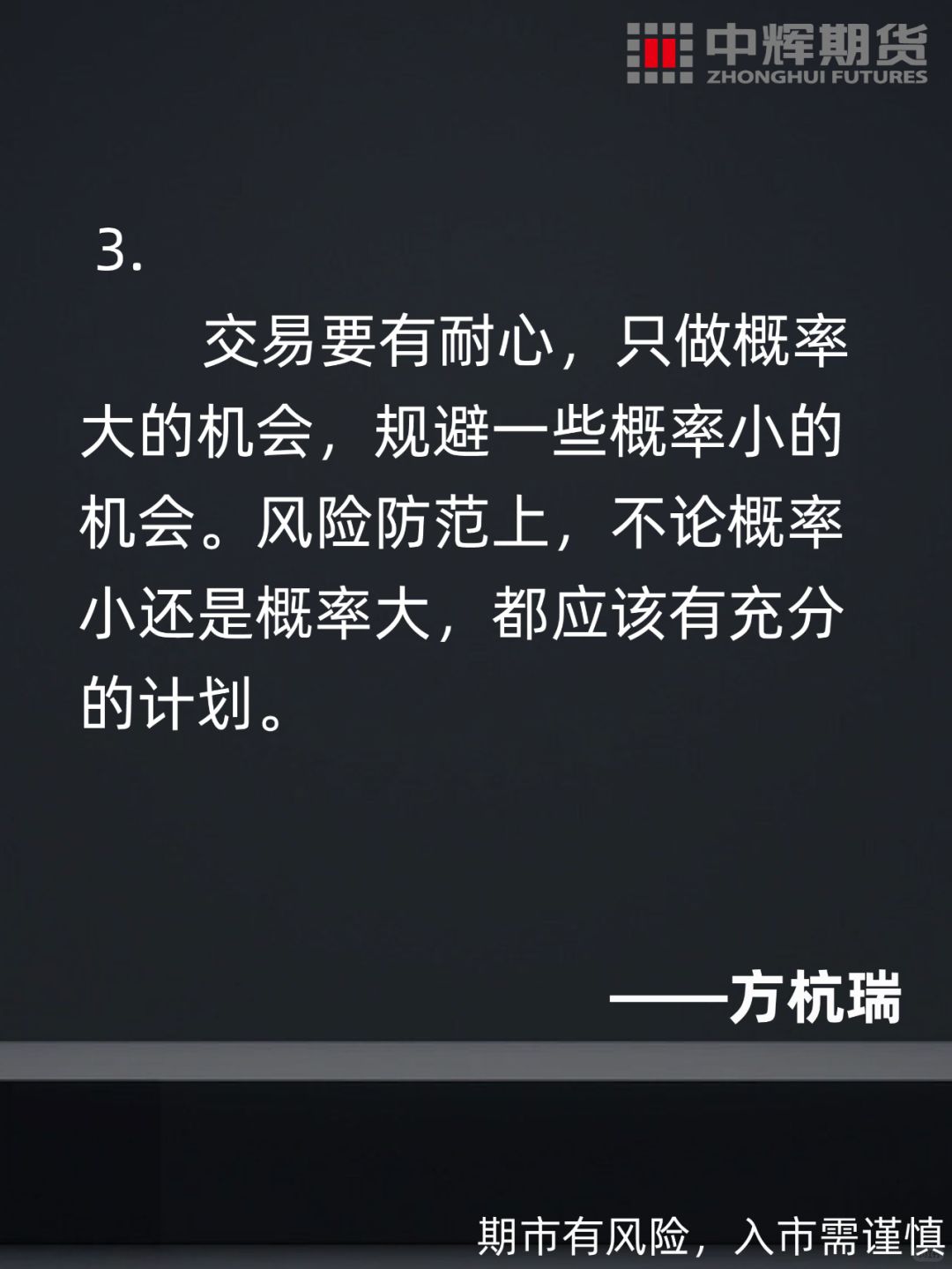 📍在一次记者专访中,方杭瑞被问及为何能在短期内实现盈利,他表示:“找到适合自己做的事是最重要的。我比较幸运地接触到期货,可能我的性格也比较适合这个行业。我做事情比较谨慎,遇到问题喜欢反思。”