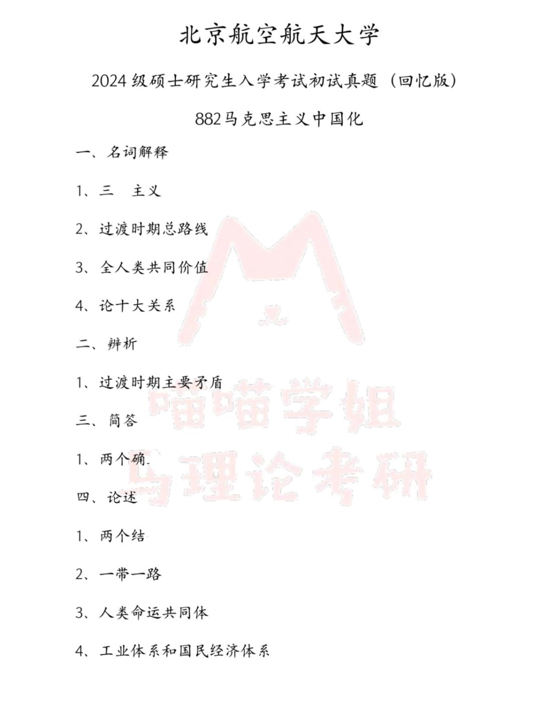 ‼️24马理论考研北京航空航天大学真题分享‼️