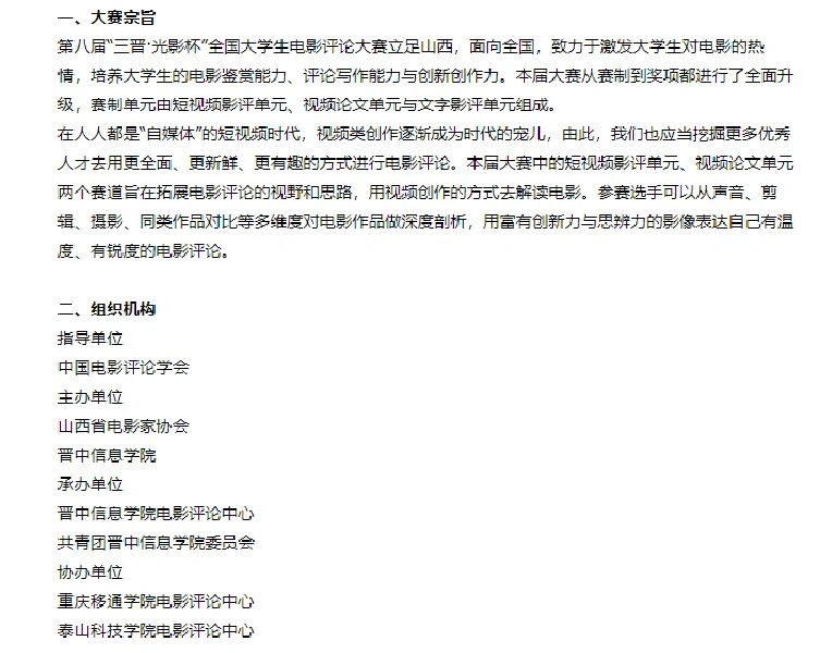 🍂第八届“三晋·光影杯” 全国大学生电影评论大赛