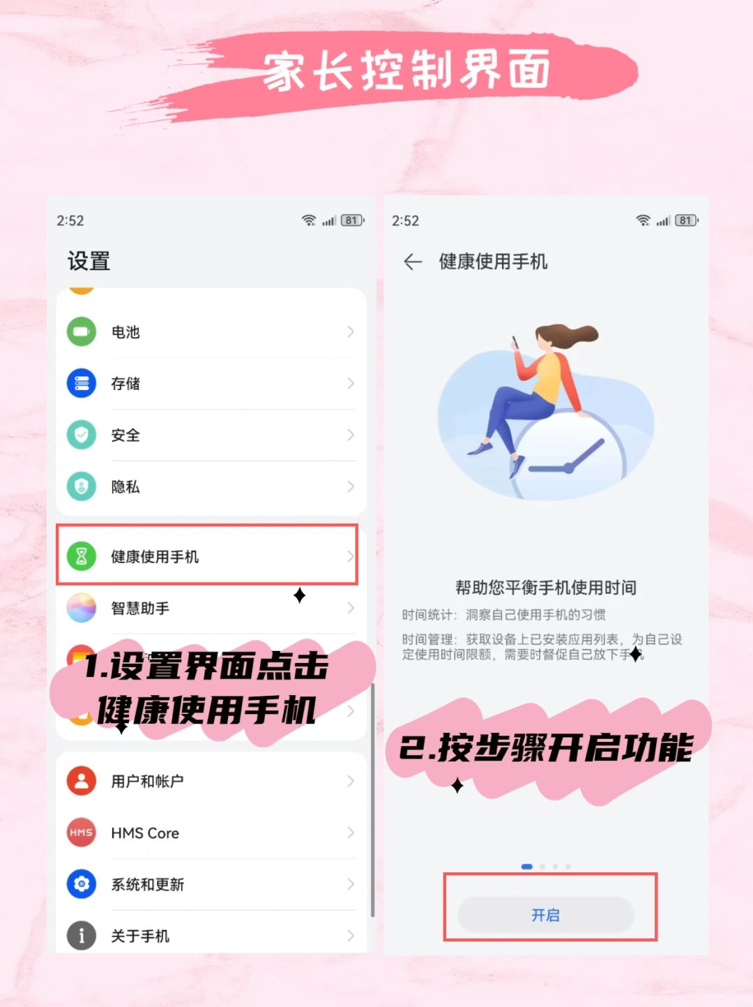 2️⃣家长手机上设置孩子使用时间